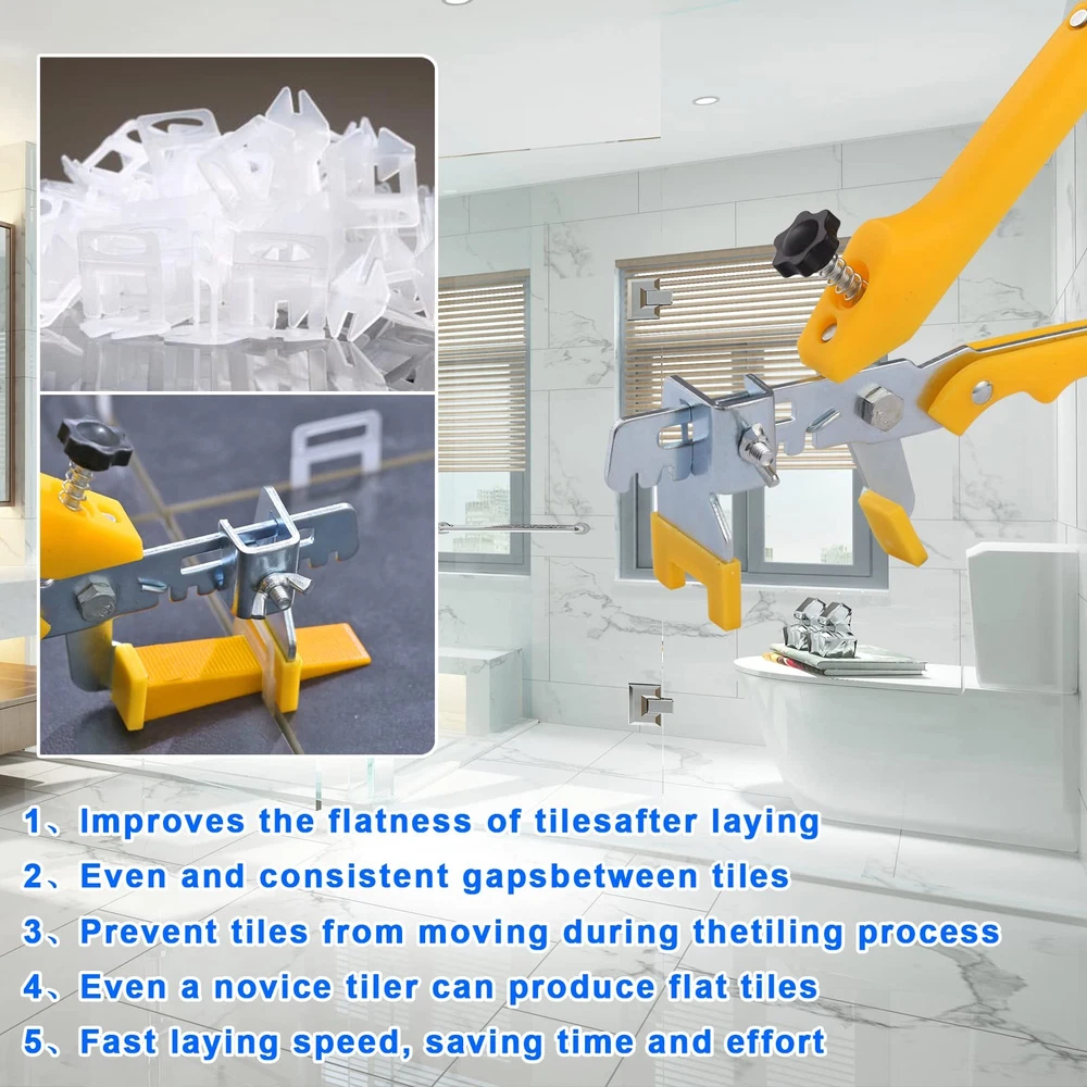 Products include: 5500-Piece Leveling Spacer Clips 1*Pcs 16 oz Rubber Mallet Product advantages: 1. When laying, prevent the tiles from moving and make the gap between the tiles even. 2. After laying, improve the flatness of the tiles and make them more beautiful! 3. Reduce the difficulty of construction, save the time of installation personnel, novices can practice. Tips: 1. Before placing the tiles, remember to erase some cement on the edges of the tiles. Don't fill the tiles with cement. After placing the clamp, this will prevent the cement from being wrapped in the clamp. Curing will affect the removal of the clamp. 【What You Get】:5500pcs 1/8 inch tile leveling spacer clips and 16 oz Rubber Mallet - Durable Eco-Friendly Rubber Hammer Tips.There are other tile leveling system kits in store looking forward to your purchase! 【What You Get】We offer 1-year warranty and lifetime service for a risk-free experience. If you have any questions, don't hesitate to contact us. 【16 oz -Hammer】:Double-sided solid rubber head,High-strength fiberglass handle core ,Outer polyethylene sheath protects handle core from mis-hits,Rubber handle so hands never loose 【Disposable Tile Clips】1/8"(3mm)Tile Clips Suitable for 1/8" (3mm) to 1/2"(12mm) thickness of the tile, allows for a 1/8"(3mm) minimum grout joint. 【Easy to Use and Efficient】: Novices can also use it easily. It will hold the tiles firmly and is very easy to install and remove. 4 Tile Clips and wedges are recommended for one tile; 6 or 8 tile spacers and wedges are recommended for larger tiles.【24 Hours】: Note, After waiting 24 hours, kick or use a rubber mallet to remove the clips of the tile leveler. Wedges are reusable! 【High QualityTile Leveling System Wedges】tile leveler Clips adopt a brand new PVC material.Wear-resistant and compressive, high bearing capacity, not easy to break【Suitable for all tile types】 :Very suitable for floor/wall tile installation, can be used for leveling all tile types, such as porcelain, ceramic, marble, and all-natural stone.