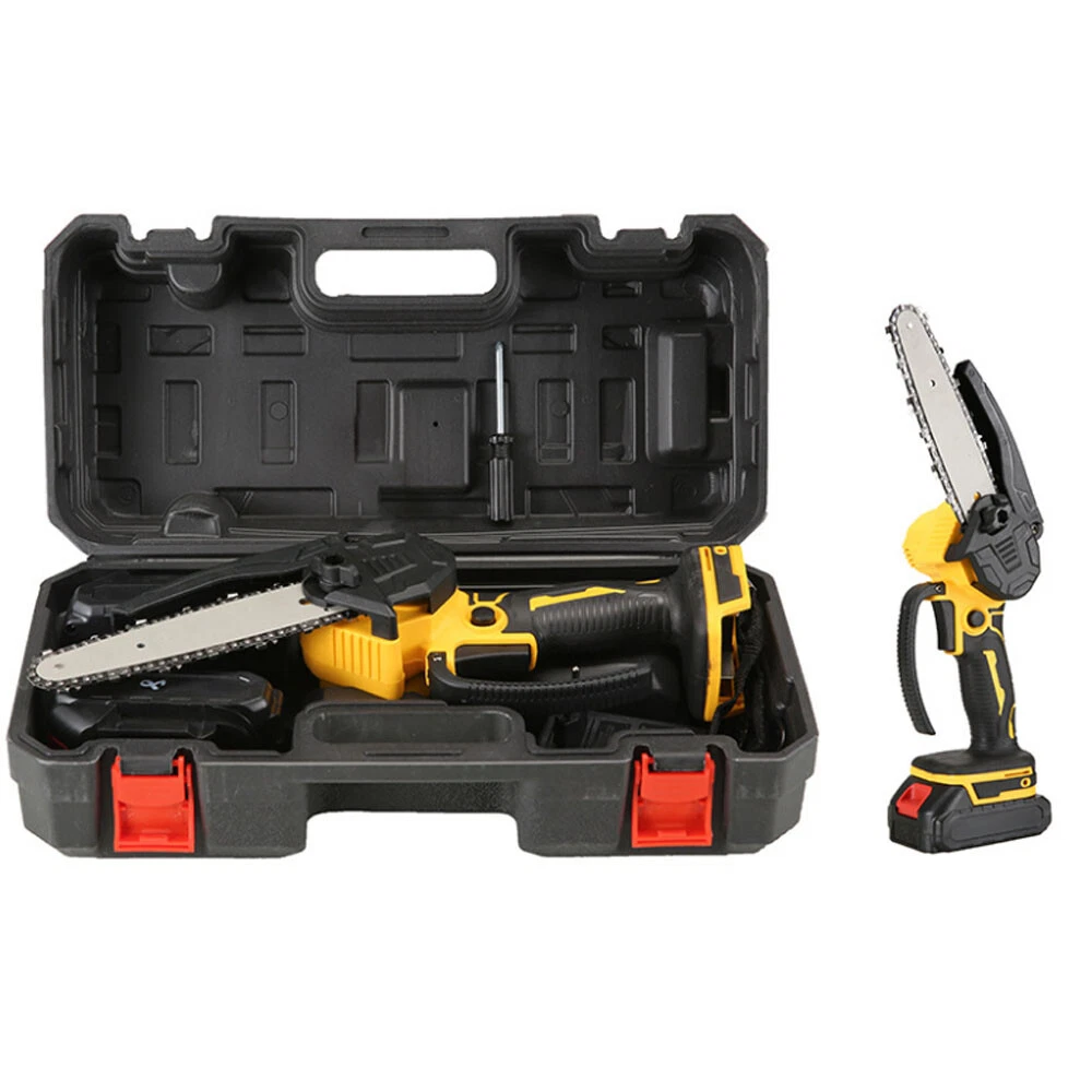 Description: 1. High power single hand saw, single hand logging effortless, light volume, surging power, full electricity easy. Work a morning, long use is not tired. 2. Cutting ging wood pruning, really a machine multi-purpose, volume is small, functional, cost-effective all-around pruning king. 3. Small volume and large power, second cut thick wood without pressure, thick wood for several seconds to cut off, cutting efficiency is improved, saw wood more efficient a top three people. 4. Multiple heat dissipation port design, fast and effective heat dissipation, effectively prevent the motor burning machine. 5. Anti-slip handle, comfortable grip and anti-slip, surface frosted treatment, effectively prevent the continuous grasp of sweating slippage. Specifications: 1. Rated power: 550W 2. Saw chain speed: 50m / min 3. Power supply type: rechargeable type-lithium battery technology Package 1 Included: 1 SET electric chain saw (Flat plugs) 2 * Battery 1 * Charger Package 2 Included: 1 SET electric chain saw (Round plugs) 2 * Battery 1 * Charger