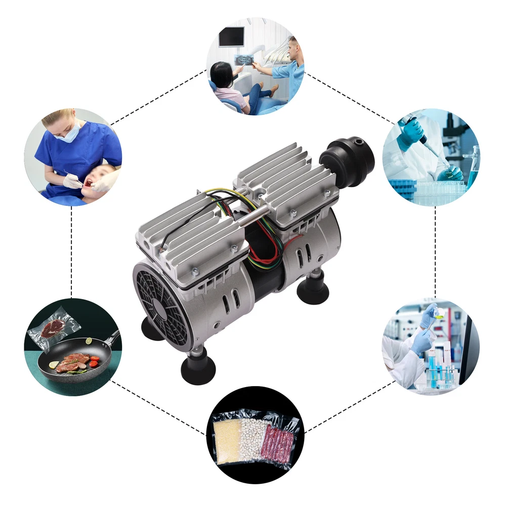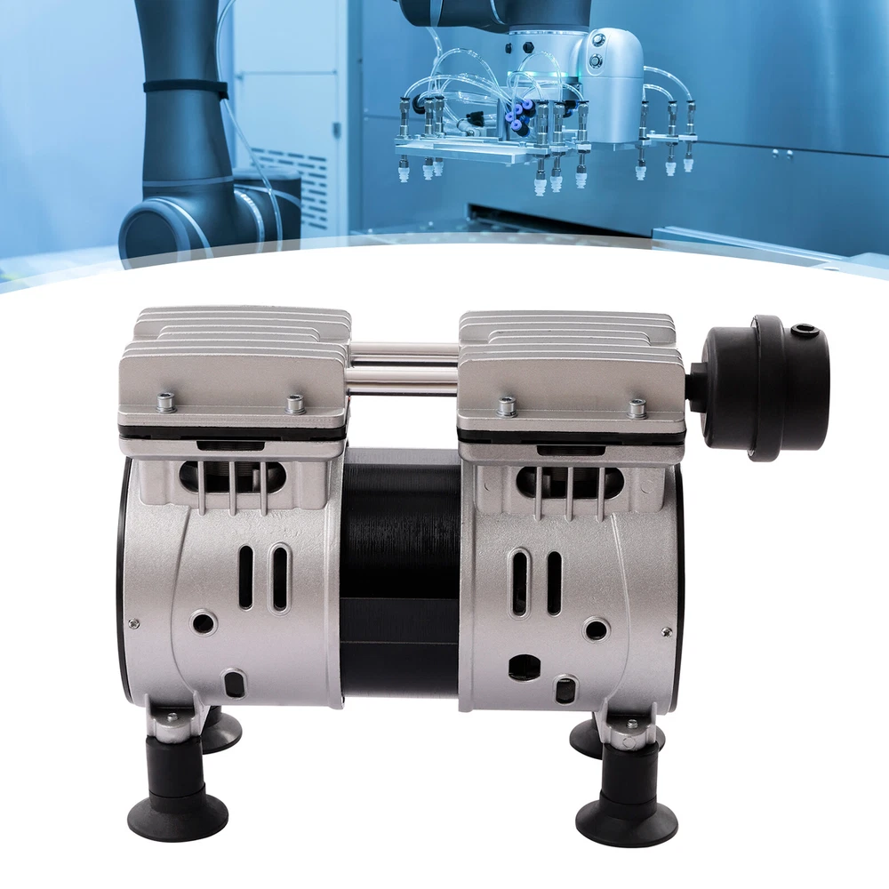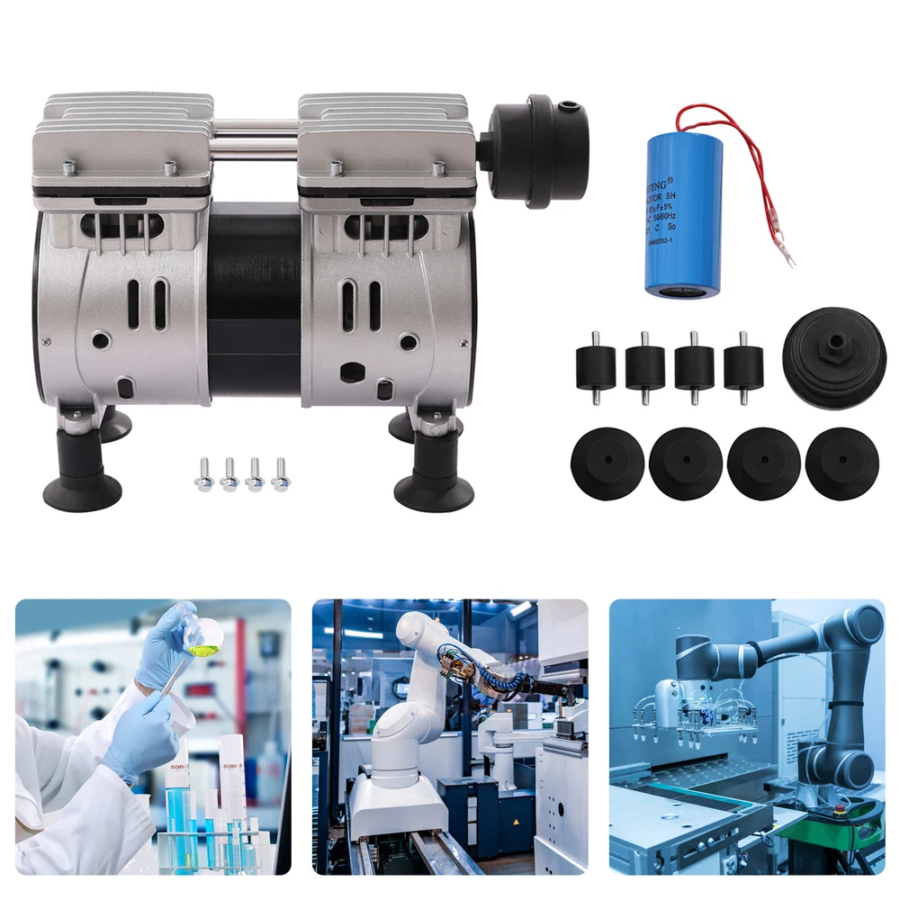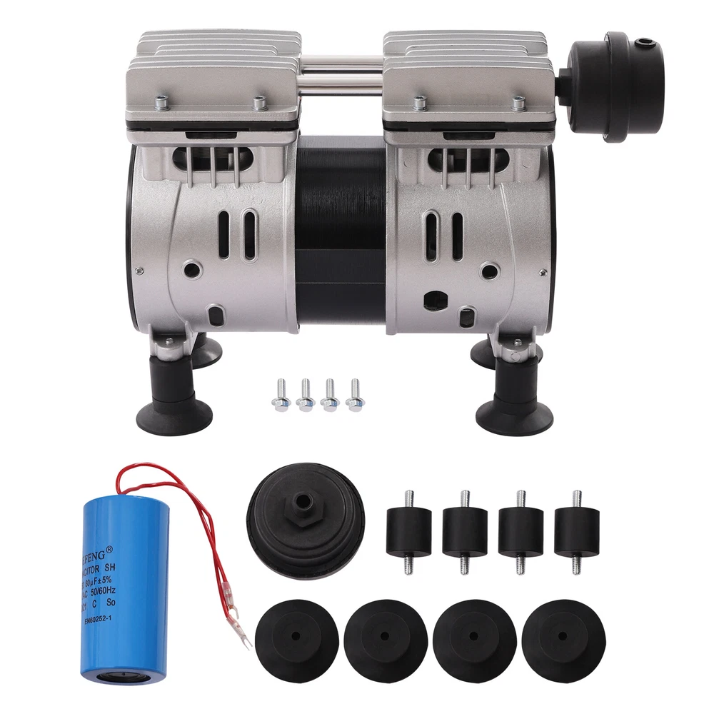 550W Oilless Diaphragm Vacuum Pump Industrial Oil Free Vacuum Pump 2 Cylinders Description This is an oil-free vacuum pump with a high-quality copper motor that is more energy efficient and silent. The cast aluminum housing with excellent corrosion resistance makes this oil-free vacuum pump more durable, robust, and resistant to oxidation. This oil-free vacuum pump is suitable for a wide range of applications, such as medical compressors, air tools, textile machinery, sandblasting, painting, plastic machinery compressors, tire inflation. It is a wise choice for you. Application This air compressor head can be used for spray gun painting, air guns, nail gun nailing, auto repair, etc. This oil-free vacuum pump is powerful and suitable for medical compressors, air tools, textile machinery, sandblasting, painting, plastic machinery, compressors, tire inflation, etc. Specification Model: LC-V550 Material: Aluminum, Copper, Stainless Steel Color: Silver Power: 550W Voltage: 110V/60Hz Rated Speed: 1440 rpm Inlet Diameter: 1/4'' Max Vacuum: -900mBar Noise: ≤ 62dB(A) Operating Environment: -5℃~45℃/ 23~113℉ Exhaust Volume: 102L/min / 3.6cfm Number of Cylinders: 2 Number of Cooling Fans: 2 Temperature Rise: ≤ 85K Gross Weight: 10kg/22.05lbs Net Weight: 9kg/19.84lbs Product Size: 28*15*22cm/11*5.9*8.7in Package Size: 29.5*25*16.5cm/11.61*9.84*6.5in Package Included 1*Oil-Free Vacuum Pump 4*Rubber Feet 1*Silencer All Accessories Needed for Installation Key Features High-quality Material: This machine adopts a cast aluminum shell, delicate aluminum conduit, copper wire motor, and stainless steel screws. It has enough mechanical strength, strong oxidation resistance, and good anti-heat performance. What's more, it adopts high precision and hardness silent bearing, and the bearing is high-temperature resistant and long service life. Strong Heat Dissipation: This machine has two cooling fans, one on each side of the left and right. The temperature rise is less than 85K, so you do not have to worry about the safety problems caused by the high temperature of the machine during use. Powerful&Energy-saving Motor: This machine uses a copper wire motor, which is more energy efficient and silent. And it has less resistance than aluminum wire, the heat generation is low and the current is smooth. So the heat will not be wasted, and it has advantages in energy consumption, low carbon, and environmental protection. High Efficiency: The rated speed of the product reaches 1440rpm, and the high quality bearings greatly help you to improve the efficiency and reduce the working time. Easy to Maintain: The way of lubrication of this machine is oil-free air compression, so it is safer to use and you don't need to worry about the maintenance of the vacuum pump. It saves a lot of energy and time for you. Long Service Life: The two cylinders of this machine are hardened inside, so they are more resistant to friction and high temperature. Because of this, the service life of the machine will be longer. Protection Mechanism: The machine is equipped with shock absorbing pads, which can effectively prevent the machine amplitude from being too large to hit with other objects. It can protect the machine well and effectively extend the service life of the machine. Low Noise: The machine is equipped with a silencer outside, and the noise is less than or equal to 62dB. The use of this machine can provide you with a quieter working environment, and you no longer have to be annoyed by the loud environmental noise. Quality Service: Your satisfaction is our top priority, we will make things right for you. If you are unsatisfied with our products, you can contact us and we will ensure you have a pleasant shopping experience in our store. Details Suction Cup Foot Pads: The enlarged round suction cup foot pads can effectively increase the contact area between the machine and the desktop, thus making the machine more stable. And it can further reduce the amplitude of the machine, thus preventing the machine from damage caused by collision. Steel Valve Piece: The steel valve piece used in this machine is strong in toughness and good in stopping air, which can not be deformed under the long time operation of the machine and effectively increase the service life of the machine. Notes Please allow the slight color difference caused by the shooting light and 1-3cm error due to manual measurement. Please make sure you do not mind before you order. Payment Delivery details Terms of sales About us Contact us Payment We accept ebay payment 。 Fees such as import duties, taxes are not included in the item price or shipping costs. These charges are the buyer's responsibility. Delivery details Shipping: 2-9 working days to: USA Terms of sales We maintain high standards of excellence and strive for hundred percent customer satisfaction. Feedback is very important to us. We hope that you contact us immediately before you give neutral or negative feedback, so that we can address your concerns. It is impossible to address issues if we do not know about them! About us Your satis faction is our ultimate goal. We work hard to earn your trust and future business. Our certified technicians have tested each item before shipping. The unit comes with 1 year limited warranty on all manufacturing defects. a) If you receive a defective item, you may return it or ask for a discount. Please contact us within 14 days after you receive the package. b) What you returned must be intact and in its original packaging as re? u. Customer is responsible for shipping costs of the returned item. c) We will cover the cost of shipping back t with the shipping rate indicated in the registration page. We will send you a new unit or refund the full payment you paid. Thank you. Contact us Business Hour Business Hour: Monday To Friday: 8:30 AM to 5:00 PM (Beijing China time) Due to time zones, our reply to your questions may not be immediately. But within above working time, 