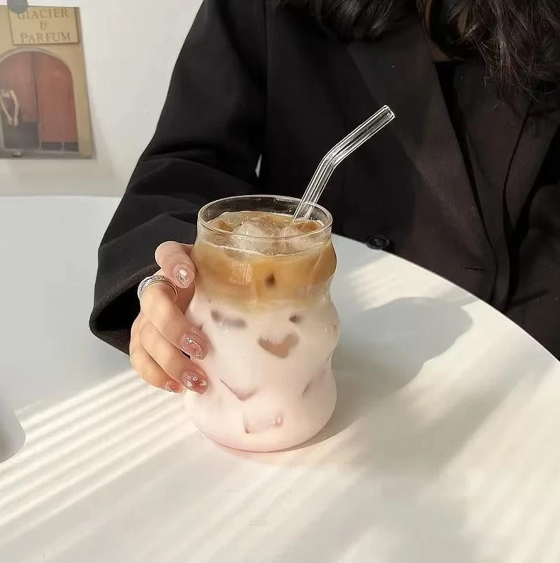 550ml Clear Bubble Tea Glass Mug with Straws for Beer or Aesthetic Drinks