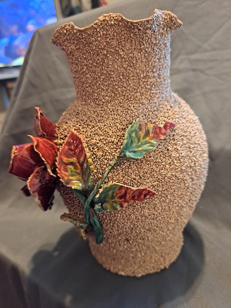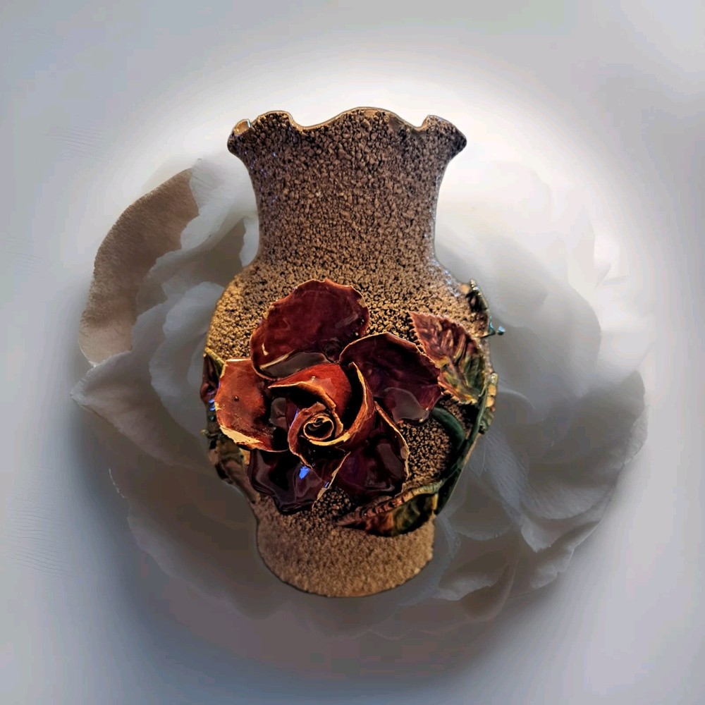 This 5.5" medium-sized ceramic vase features a textured finish with a multicolor splatter design, creating a unique and eye-catching look. The vase is specifically designed in the pattern of a flower, with a rose as the subject. Perfect for displaying flowers or as a standalone decorative piece, this vase adds a touch of elegance to any space.