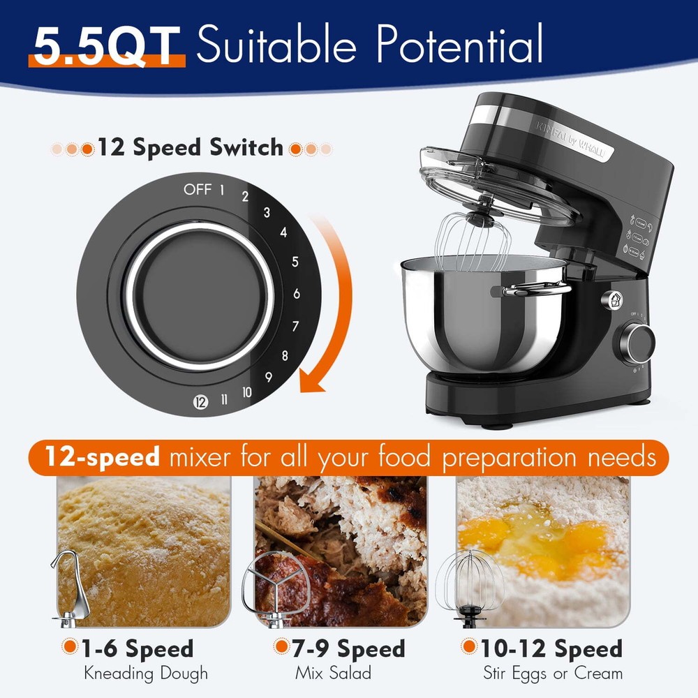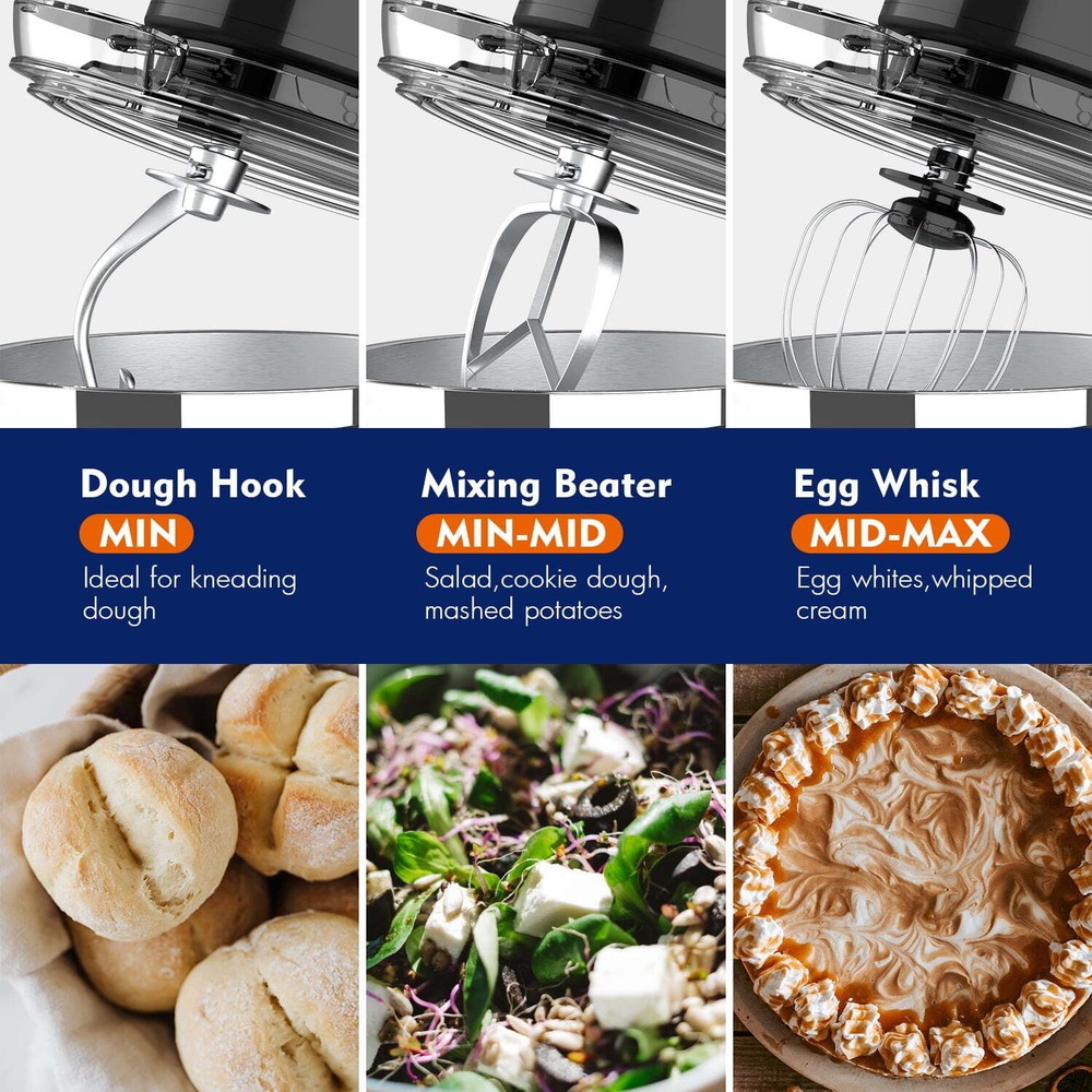This mixer is a game-changer for any home baker! The 5.5QT bowl handles large batches with ease, and the 12-speed control gives perfect results every time—whether kneading dough or whipping cream. The tilt-head makes adding ingredients so convenient, and the included dough hook and wire whip are sturdy and effective. Powerful yet quiet, it’s a must-have for effortless baking!