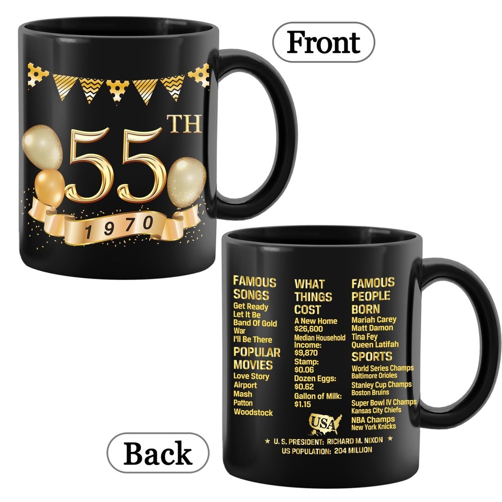 Most customers bought our cups after browsing our products Best Gifts For 55 Year Old Men: the gift for 55 year old men & women lovely themed, is a fantastic men & women 55th birthday gifts ideas to brighten the special day. This 55th birthday cups is sure to bring a smile to the you loves face and provide ongoing joy as who enjoys daily cup of coffee or tea. Gifts For 55Th Birthday Men & women: 's Birthday gifts 55 year old men & women mug are great gifts for a 55 year old men & women birthday celebrations or any other special occasion: Christmas, Father Day Mother Day... With our funny design, they will love this gift, making this 55 coffee mug a memorable and cherished choice. 55 Years Old Birthday Gifts For Men & women: Birthdays are special, signifying the passage of time and the start of a new chapter. At , we specialize in crafting unique and exceptional birthday gift for 55th birthday men & women, catering to those who truly deserve the very best. Your loved ones can expect heartfelt and -of-a-kind gift for 55 + year old men & women birthday from us. Nostalgic Design: Featuring a stylish and timeless design, this mug highlights the significance of the year 1970. Ideal for those who appreciate a touch of nostalgia, it's a unique and thoughtful gift that stands out from the ordinary. Enjoy your shopping at ! Our gifts for 55th birthday mugs for men & women is made with high-quality ceramic, featuring double-sided printing suitable for both right and left-handed users. We offer excellent customer support, with 24/7 assistance for any questions you may have. Your satisfaction is our priority.