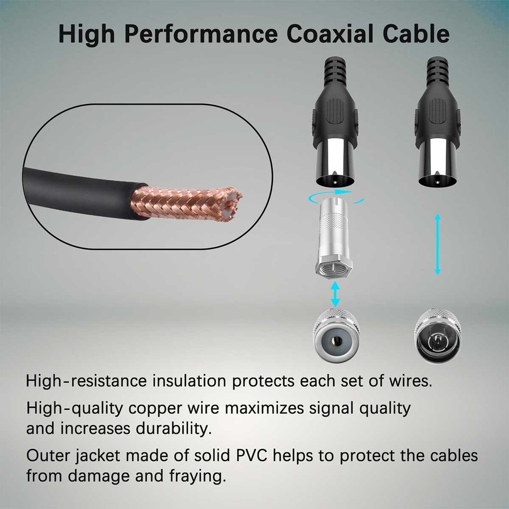 Excellent quality. Needed a longer length antenna for my emergency battery TV. Short one provided did not give good reception. This antenna gives me much better reception, and I can even get additional over the air channels that I did not know were available. Great product! Thanks very much!