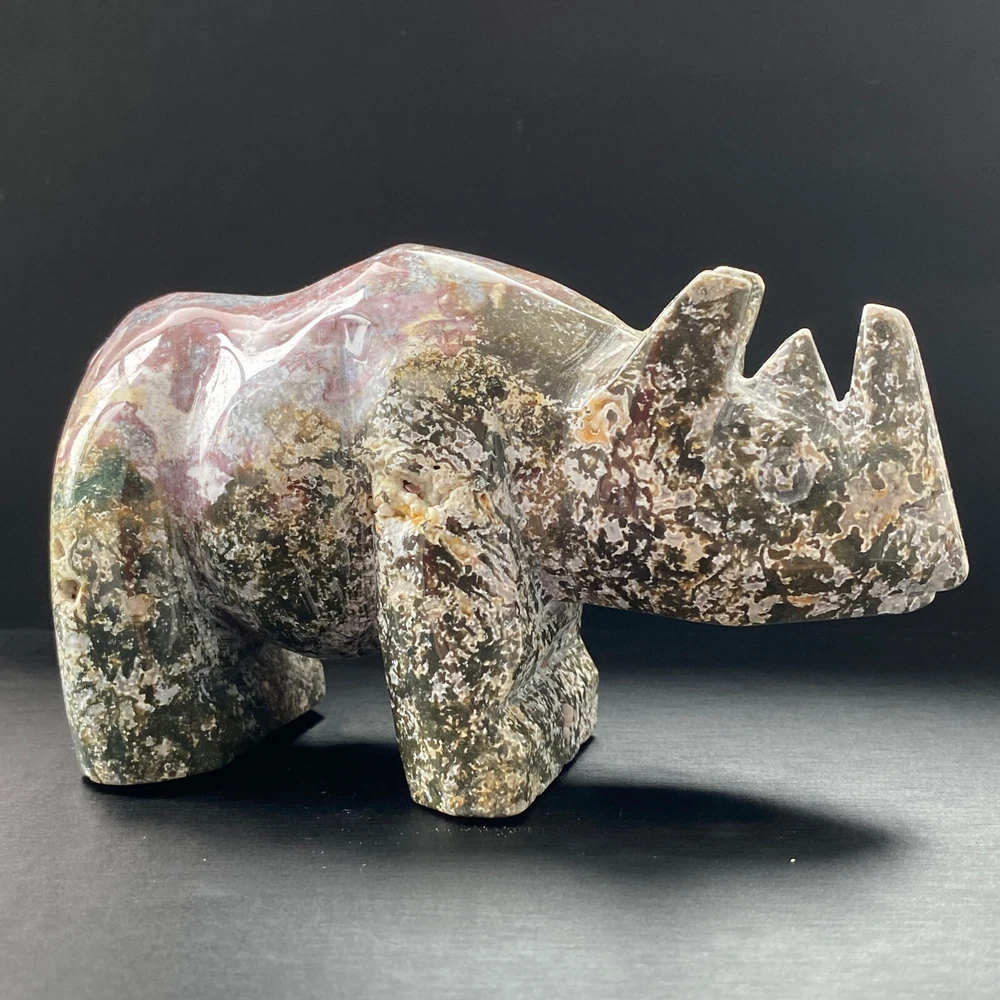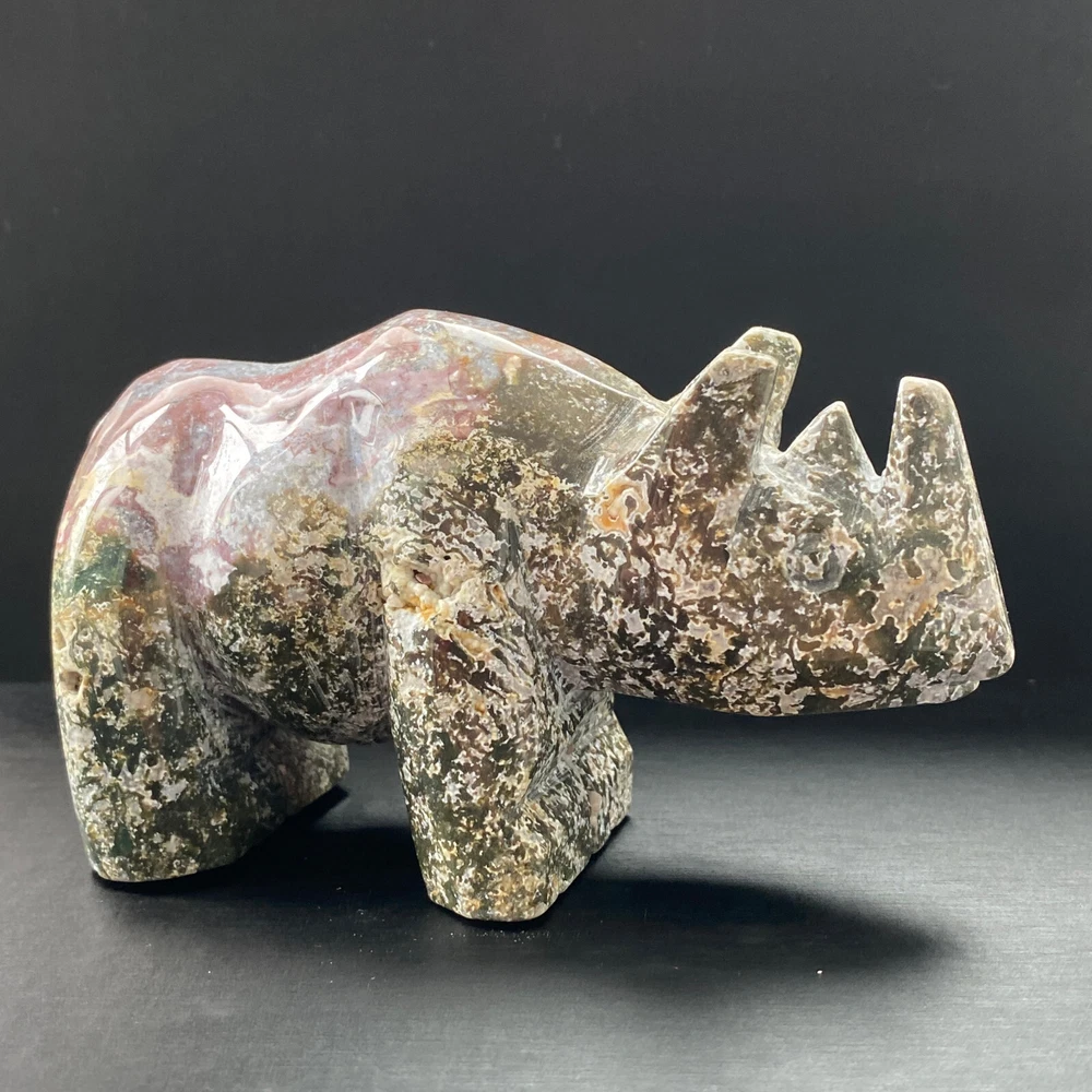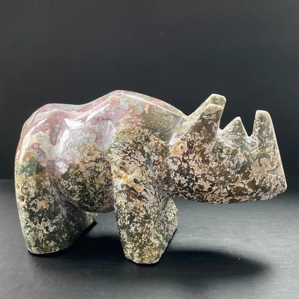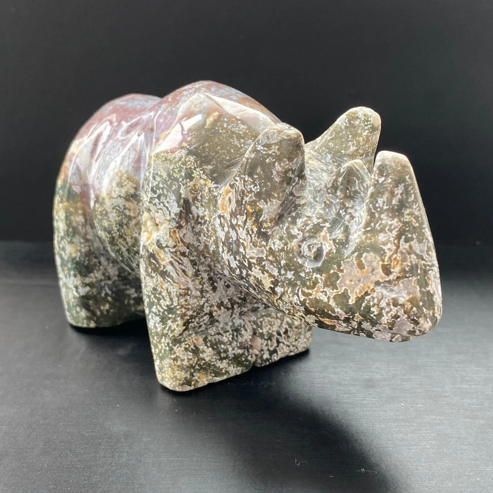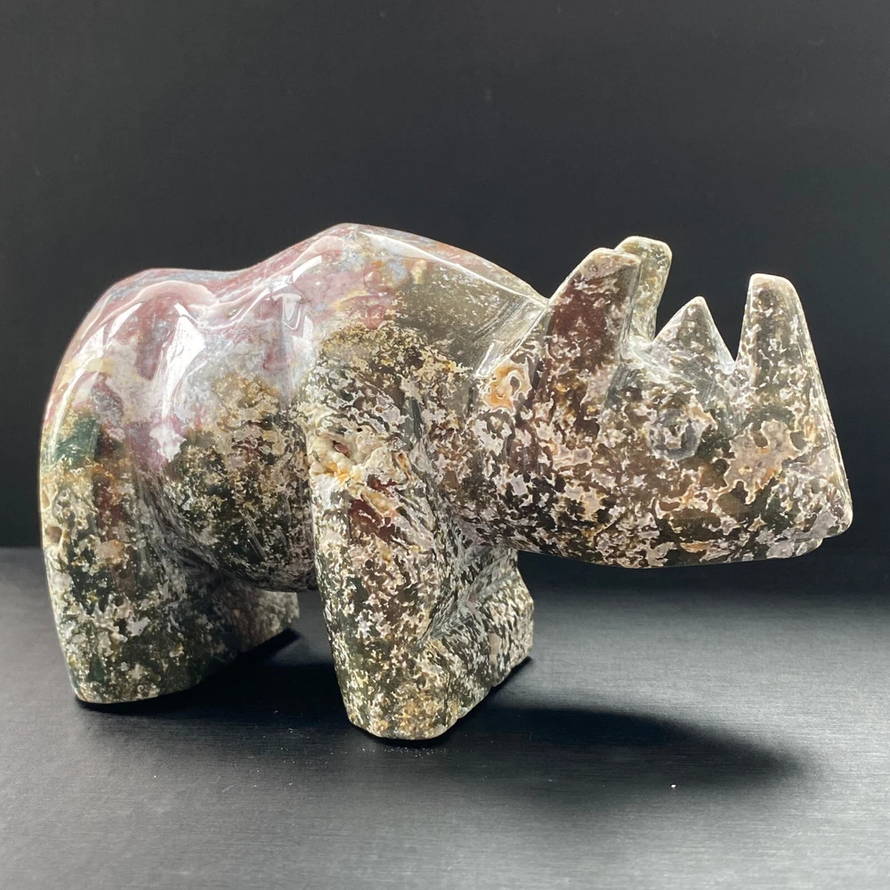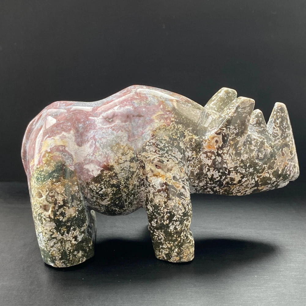 562g Amazing Natural Ocean Jasper Crystal Carved Rhinoceros Jasper Halo Stone