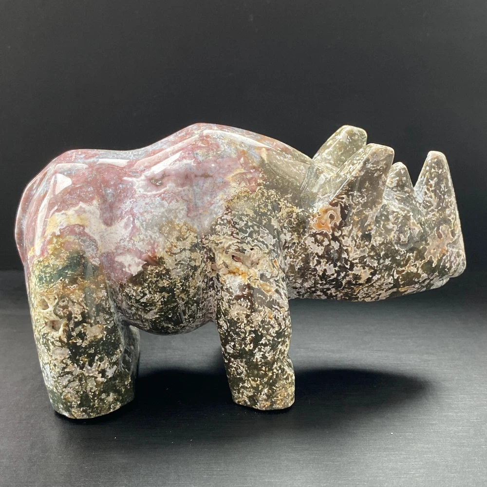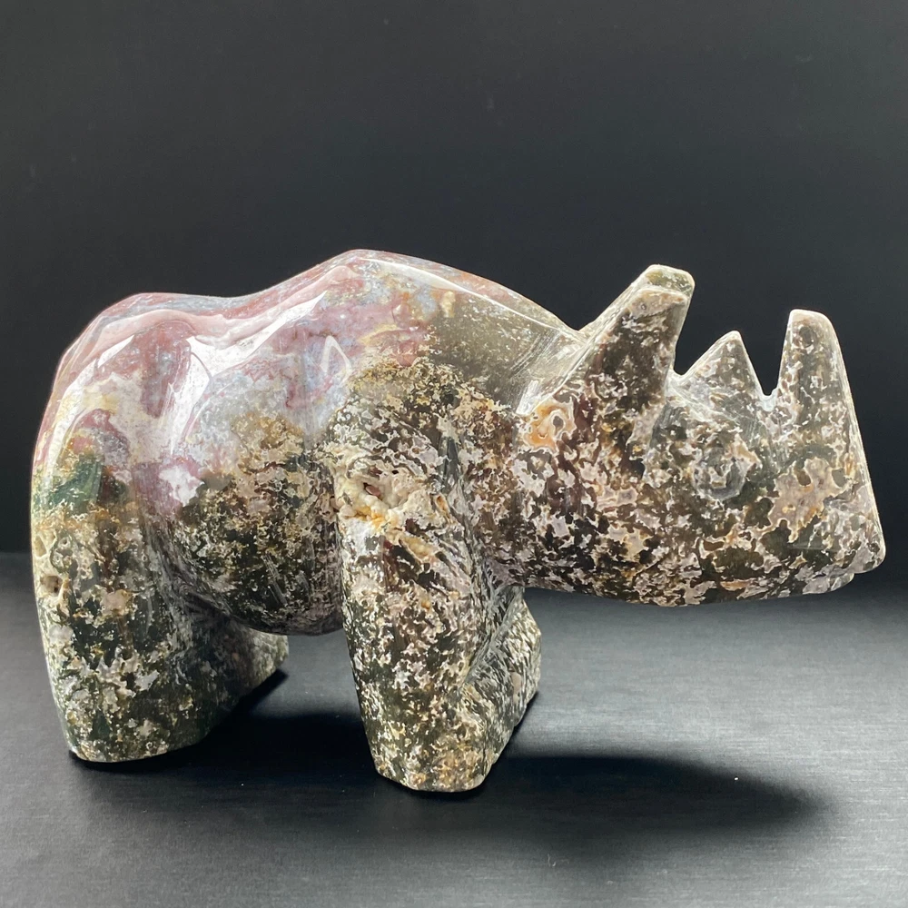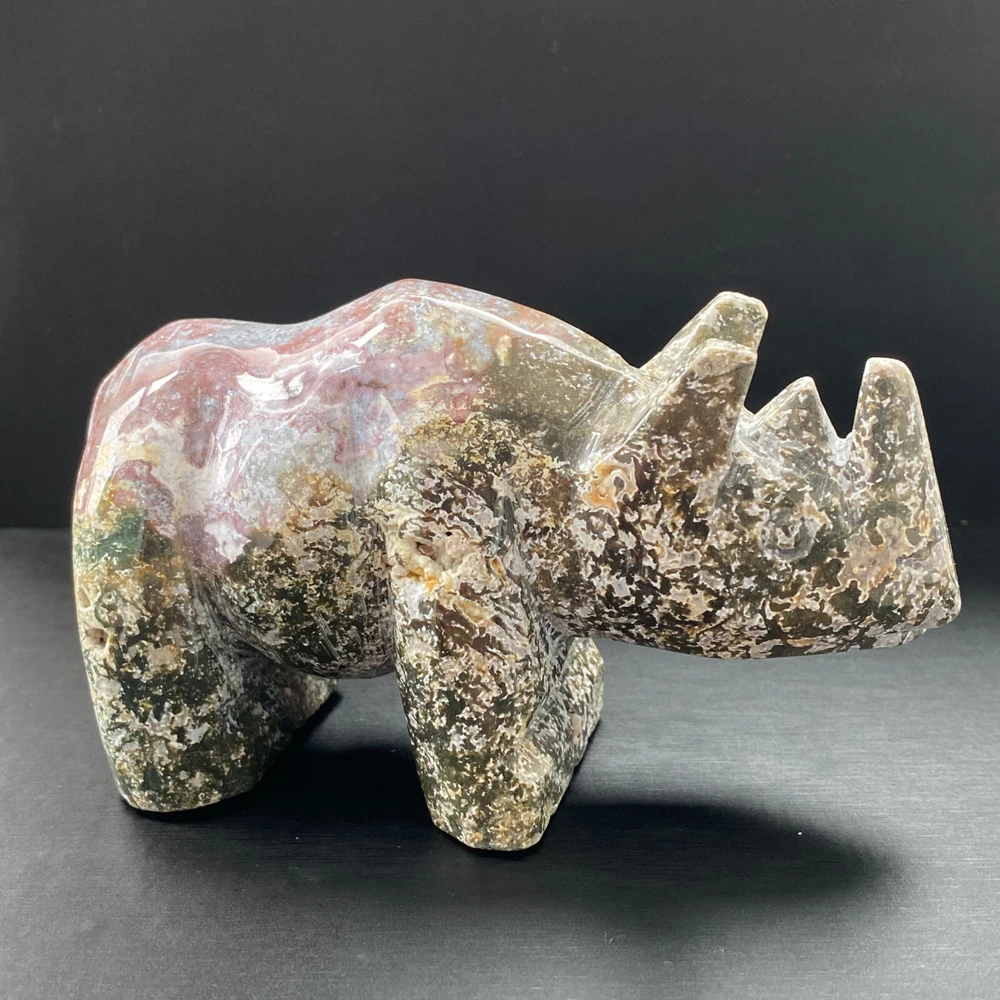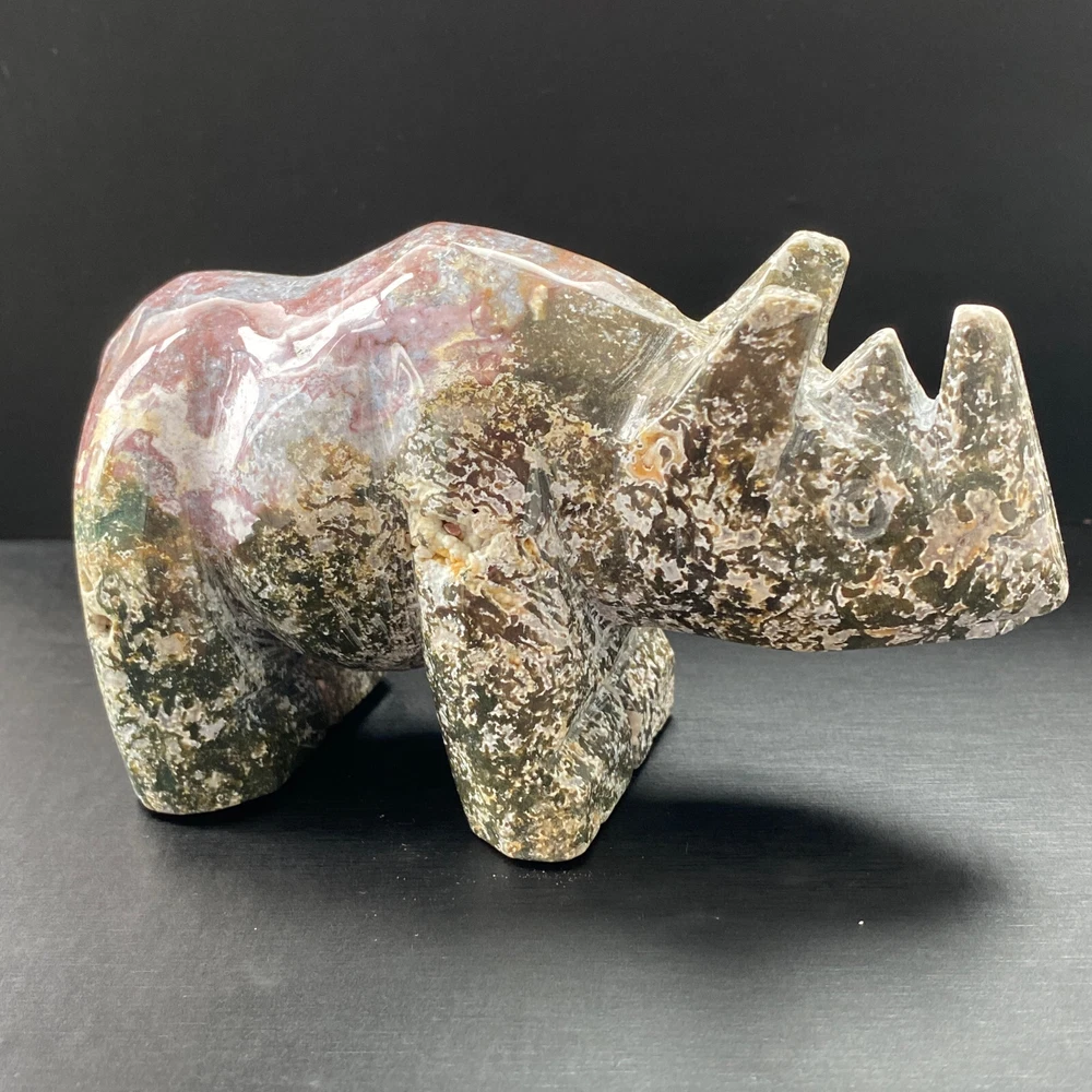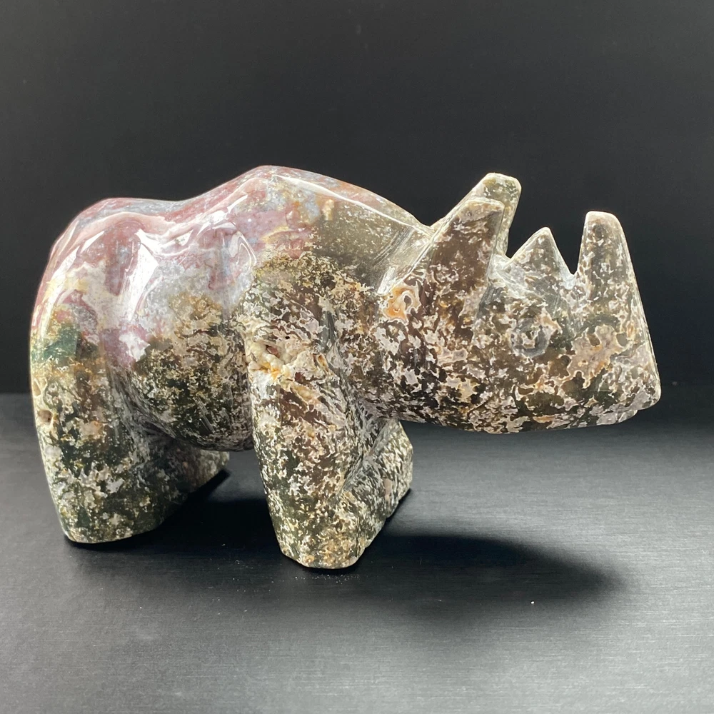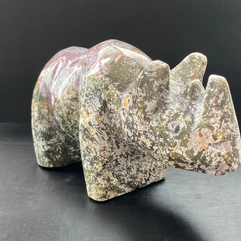 562g Amazing Natural Ocean Jasper Crystal Carved Rhinoceros Jasper Halo Stone