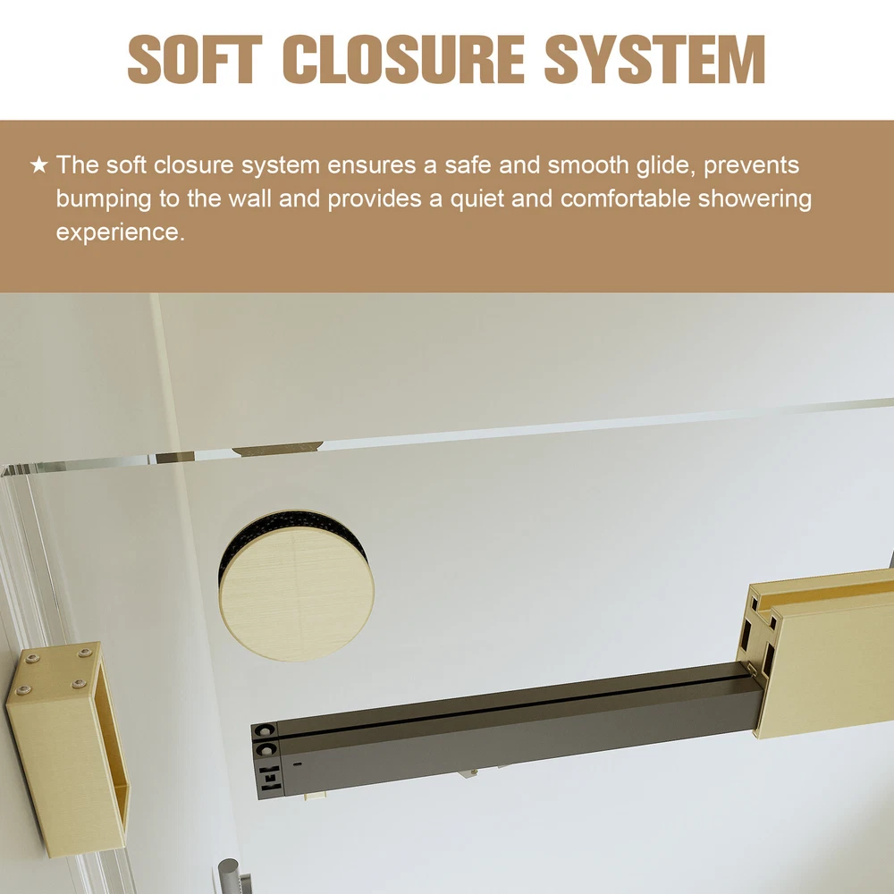 56-60"W x 76"H Sliding Frameless Shower Door in Brushed Gold 3/8'' Clear Glass
