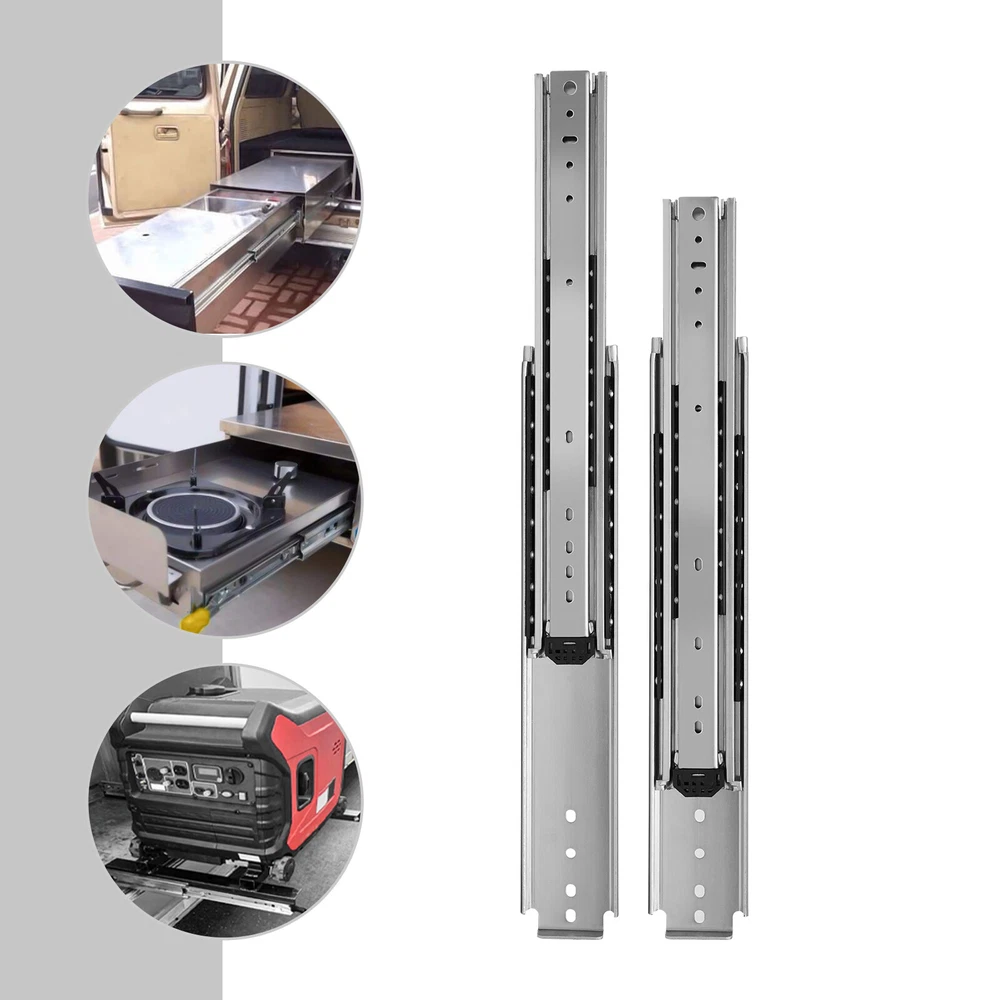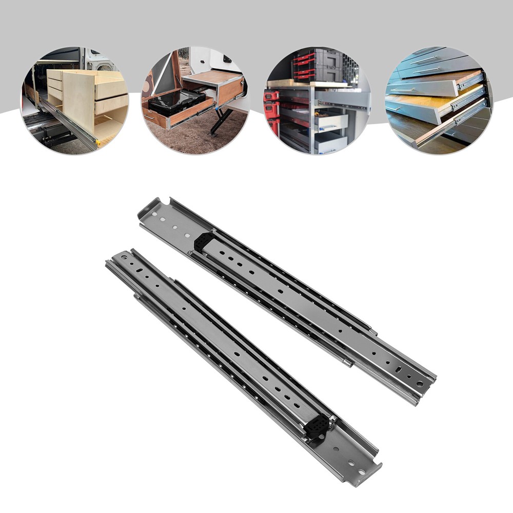 Specification Style: Simple, Modern Material: Cold Rolled Steel Q235 Color: Silver Quantity: 2 Surface Treatment: Galvanized Finish Load-Bearing Capacity: 226.8kg/500lbs Slide Length: 142.24cm/56in Slide Width: 7.6cm/3in Package Size: 145*18*6cm/57.09*7.09*2.36in Gross Weight: 14kg/30.11lbs Package Included 1 Pair of Heavy-Duty Drawer Slides 56 Inch Heavy-Duty Drawer Slides Galvanized Finish Surface Treatment Silver New Installation Steps. 1. Find Two Horizontal Lines in the Installation Position on Both Sides of the Cabinet, and Fix the Outer Fixed Slides to the Horizontal Lines on Both Sides with Screws; (Note: the Positioning of Both Sides Must Be Parallel). 2. Completely Pull the Slide Rail, and Fix the Drawer to the Inner Fixed Rail with Screws According to the Horizontal Line. 3. the Installation Is Finished. Specification Style: Simple, Modern Material: Cold Rolled Steel Q235 Color: Silver Quantity: 2 Surface Treatment: Galvanized Finish Load-bearing Capacity: 226.8kg/500lbs Slide Length: 142.24cm/56in Slide Width: 7.6cm/3in Package Size: 145*18*6cm/57.09*7.09*2.36in Gross Weight: 14kg/30.11lbs Package Included 1 Pair of Heavy-duty Drawer Slides Notes Please Note That in Order to Ensure the Safety of Users, the Heavy-duty Slide Rails Cannot Be Disassembled. Please Note That Screws Are Not Included in the Package, You Need to Purchase Your Own M4 and M6 Half-round Head Screws. Please Note That the Installation Gap on Both Sides Should Be More than 20mm/0.79in. Please Allow the Slight Color Difference Caused by the Shooting Light and 1-3 Cm Error Due to Manual Measurement, and Make Sure You Do Not Mind Before Ordering. Payment Delivery details Terms of sales About us Contact us Payment We accept ebay payment 。 Fees such as import duties, taxes are not included in the item price or shipping costs. These charges are the buyer's responsibility. Delivery details Shipping: 2-9 working days to: USA Terms of sales We maintain high standards of excellence and strive for hundred percent customer satisfaction. Feedback is very important to us. We hope that you contact us immediately before you give neutral or negative feedback, so that we can address your concerns. It is impossible to address issues if we do not know about them! About us Your satis faction is our ultimate goal. We work hard to earn your trust and future business. Our certified technicians have tested each item before shipping. The unit comes with 1 year limited warranty on all manufacturing defects. a) If you receive a defective item, you may return it or ask for a discount. Please contact us within 14 days after you receive the package. b) What you returned must be intact and in its original packaging as re? u. Customer is responsible for shipping costs of the returned item. c) We will cover the cost of shipping back t with the shipping rate indicated in the registration page. We will send you a new unit or refund the full payment you paid. Thank you. Contact us Business Hour Business Hour: Monday To Friday: 8:30 AM to 5:00 PM (Beijing China time) Due to time zones, our reply to your questions may not be immediately. But within above working time, we will reply your email within 24 hours. If it's non-workdays, please kindly be patient and wait till Monday. Please contact us with ebay message. Please feel free to contact us if you have any questions. Monday To Friday: 8:30 AM to 5:00 PM (Beijing China time) Due to time zones, our reply to your questions may not be immediately. But within above working time, we will reply your email within 24 hours. If it's non-workdays, please kindly be patient and wait till Monday. Please contact us with ebay message. Please feel free to contact us if you have any questions. Features Fast sjipping, High-quality Material, 3 years warranty Warranty Three years Highlights Easy installation, Fast shipping, High quality Manufacturer Warranty 3 Years Country/Region of Manufacture Unknown Brand Unbranded Type Ball Bearing Style Modern Material Cold Rolled Steel Q235 Color Silver Quantity 3 Surface Treatment Galvanized Finish Load-Bearing Capacity 226.8kg/500lbs Item Width 7.6cm/3in Item Length 142.24cm/56in Package Size 145*18*6cm/57.09*7.09*2.36in Gross Weight 14kg/30.11lbs UPC Does not apply