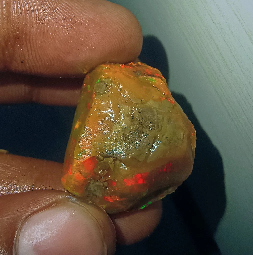 63 Ct Natural Ethiopian Fire Opal Rough Untreated Certified Gemstone SEE VIDEO