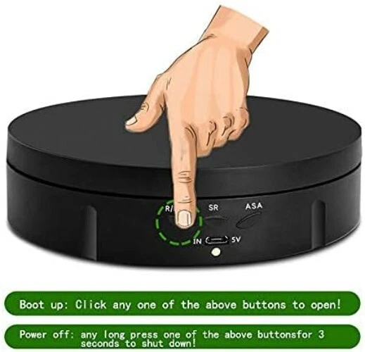 Portable 5.74-inch Electric Turntable Display Stand for Jewelry & Photography ‹ › ‹ › ‹ › ‹ › ‹ › ‹ › ‹ › ‹ › ‹ › ‹ › ‹ › Portable 5.74-inch Electric Turntable Display Stand for Jewelry & Photography Elevate Your Display Discover the elegance of dynamic presentation with our Electric Turntable Display Stand. Perfect for showcasing jewelry, watches, digital products, bags, models, and collectibles, this turntable enhances the visibility of your prized possessions. Ideal for shops, studios, schools, libraries, exhibition halls, and living rooms. Versatile Features: Wide application for various display needs - jewelry, models, digital products, and more. Control the speed and adjust the rotation direction and angle. Operates via easy-to-use buttons: click to turn on and long press to turn off. Clockwise and counter-clockwise rotation options with 360-degree movement. Two adjustable speed settings: Choose between 1-2 revolutions per minute. Angle adjustment allowing for automatic back-and-forth rotation between 90-180°. Set the rotation speed to 8, 15, or 30 seconds per revolution based on your display requirements. Lightweight at 0.3kg with a solid load-bearing capacity of up to 10KG. Convenient & Portable With dual power supply options, including a USB cable and a built-in rechargeable battery, this turntable allows you to work wirelessly anywhere. Take it outside or to remote locations for stunning photography without the hassle of cords or searching for a power outlet. Specifications: Diameter: 14.6 cm Height: 3.5 cm Max Load: 10 KG Package includes: Rotating display stand, USB cable, built-in rechargeable battery. Why Choose Our Electric Turntable Display Stand? Perfect for enhancing your product display or photography, this electric turntable combines functionality with sophisticated design. Unleash your creativity and bring your products to life with smooth, rotating presentations that captivate your audience. Ideal for live videos or product sales, the stability and responsiveness of our turntable ensures that your items are always showcased at their best. Transform your display experience; order your Portable Electric Turntable Display Stand today! Shipping Free & Fast Shipping - We offer free shipping to most of the USA with a normal delivery time of 3-7 days. However, due to the current situation, additional delivery time (up to 3 weeks) may be required for some items. Alternative Carriers - We may use alternative carriers (e.g. USPS, FedEx, UPS, etc.) to ensure your package arrives safely and on time. Due to the use of multiple carriers, we are unable to provide a tracking number automatically. Handling Time - Orders are processed and shipped within 1-2 business days of receiving cleared payment. Shipping Restrictions - Shipping to Alaska, Hawaii, Puerto Rico, Guam, and other US territories may incur shipping charges or delivery restrictions. Please contact us before ordering, or your order can be refunded/cancelled. State Restrictions - There may be restrictions based on your state of purchase. For example, certain items may not be shipped to California due to state regulations. Contact for Tracking Updates - If you require tracking updates or have any concerns about the delivery of your order, please feel free to contact us, and we will be happy to assist you. Return 30-Day Hassle-Free Returns - We want you to be completely satisfied with your purchase. If you are not, you can return the item within 30 days of receiving it for a full refund or exchange. Easy Return Process - To start a return, simply contact us and we will provide you with a prepaid return shipping label and detailed instructions. Restocking Fee - There are no restocking fees for returns. However, the buyer is responsible for return shipping costs if the return is not due to a seller's error. Refund Processing Time - Refunds will be processed within 5 business days of receiving the returned item in its condition. Payment We accept all major credit cards, PayPal, and Apple Pay for your convenience. Your payment information is secure and encrypted to ensure a safe and seamless transaction. Please complete your payment within 3 days of purchase to avoid any delays in shipping. Feedback Your feedback is extremely important to us. We strive to provide the best products and customer service possible. If you are satisfied with your purchase, please take a moment to leave us a positive review. If you have any concerns or issues with your order, please contact us before leaving negative feedback. We are committed to resolving any problems and ensuring your satisfaction. Contact Us If you have any questions or concerns, please feel free to out to our customer support team. You can contact us through the eBay messaging system. We are available Monday to Friday, 9:00 am to 5:00 pm EST, and we will do our best to respond to your inquiry within 24 hours. Buy it now and enjoy a pleasant shopping experience! Unit Quantity: 22.1 Items Included: Turntable Display Stand,Rotating display stand,USB cable,Built-in Rechargeable battery Suitable For: Jewelry,Watch,Photographing Products,Digital Products,Collectibles,Models,Digital Product,Bag Material: Ceramic Features: Rotating,Motorized,Adjustable Speed,Adjustable Direction,Adjustable Angle,Rechargeable,Wireless,Stable,Lightweight,Controltable speed,Stability,Load bearing capacity Type: Display Stand Color: Black Lining Material: Unlined Shape: Round Department: Unisex Adults Capacity: 1 Piece Item Depth: 1.38 in Unit Type: lb