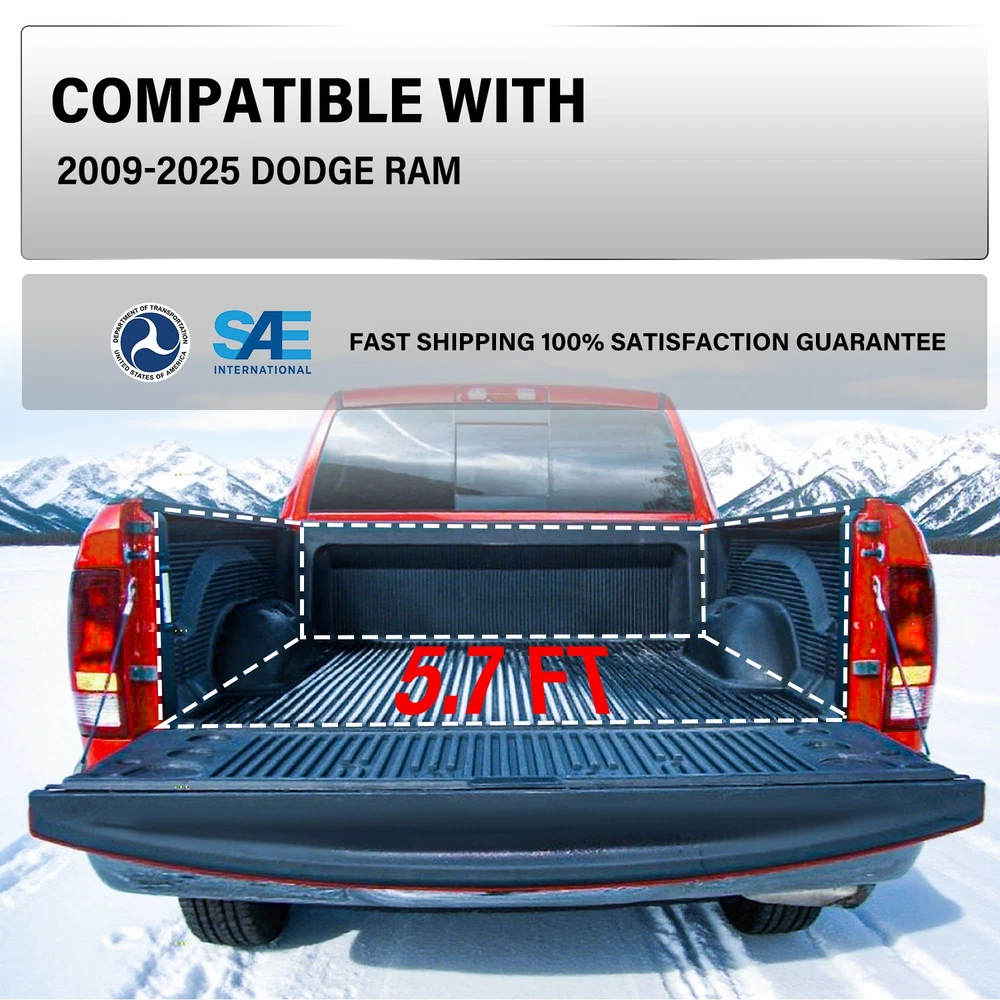 Store Categories Store Categories Headlight Tail light Other 5.7FT Hard Tri-fold Truck Tonneau Cover For 2009-2025 Dodge Ram 1500 w/o RamBox Product Description ❗ ❗ N OTE : T his acc essory cannot be installed on trucks equipped with the RAMBox storage s ystem due to design conflicts. 【Convenient Retraction System】: The retractable feature of this tonneau cover allows for easy and convenient access to the truck bed. With a simple pull or push, you can retract or extend the cover, providing hassle-free loading and unloading of cargo. This versatility makes it suitable for various types of hauling needs. 【Durable Aluminum Construction】: Made from high-quality aluminum, this tonneau cover is built to withstand the rigors of daily use. The sturdy construction ensures long-lasting durability, making it a reliable choice for truck owners who require a robust and resilient bed cover. 【Sleek and Streamlined Design】: The aluminum retractable tonneau cover features a sleek and streamlined design that not only adds a stylish touch to your truck but also reduces wind resistance, potentially improving fuel efficiency. Its low-profile appearance enhances the overall aesthetics of your vehicle. Payment Policy Shipping Policy Returns Policy Contact us Feedback Payment Policy We accept PayPal and all forms of credit card. Shipping Policy 1.We ship package directly from our CA warehouse by UPS Ground(2-5working days) or FedEx Ground(2-5working days).If you want to choose faster shipping way like Overnight Shipping.Please contact us ASAP. 2.The Item will be sent to the buyer's address registered in PayPal ONLY. If the address is not correct, please make alternation before you pay. 3.Tracking number will be provided. 4.Inspect all item upon arrival, if you found the item broken or defective, please notify us within 7 days. No claim will be accepted after 7 days. Returns Policy In the event that you would like to return your purchase, we allow returns that are processed within the defined return date (the return date is to be found in the return policy/shipping and handling section) The item must be return in good condition with original packaging and accessories, and never installed or mounted. Contact us Note: If u have any problem, complaint, advise, please give us eBay message First Before Any Feedback. We will reply your message and solve your problem during working time(Except Holiday)ASAP. Feedback Customer satisfaction is very important to us. If you have any problem with your order,please contact us and we will do our best to make you satisfied, please do not leave a negative feedback before we resolve your problem.We guarantee that your issue will be solved quickly. As long as you are happy with your purchase of , please leave us a positive feedback.Your feedback is very important to us it affects our search placement on eBay. We will leave a positive feedback for you in return automatically once we receive your feedback. Copyright © 2023 Dianxiaomi