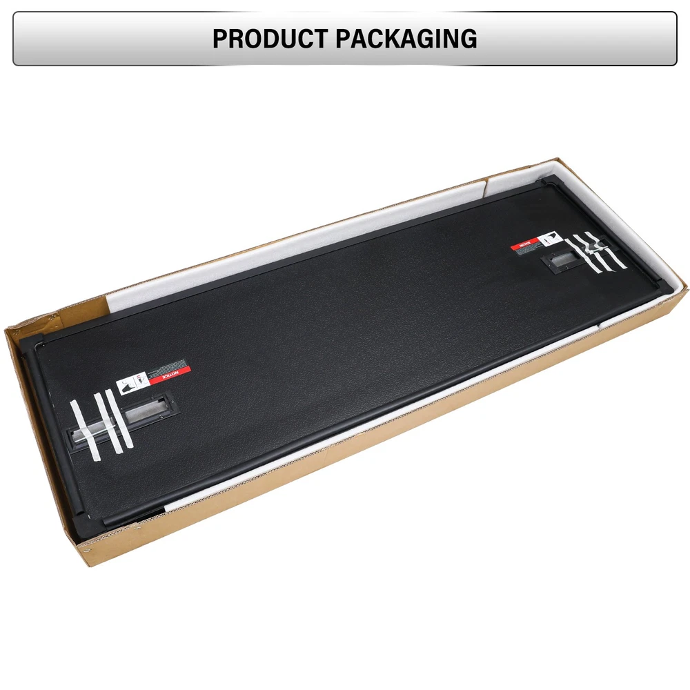 Finish: Gloss Placement on Vehicle: Upper Features: Adjustable, Hard Cover, Quick Release, Removable, Tri-Fold Brand: zenithauto-6 gtin13: Does not apply Material: Fiberglass Performance Part: Yes Type: Tonneau Cover UPC: Does not apply Attachment Type: Clamps, Fasteners, Hooks Color: Black Manufacturer Warranty: 1 Year Note: not compatible with RAMBox-equipped vehicles Items Included: Mounting Hardware