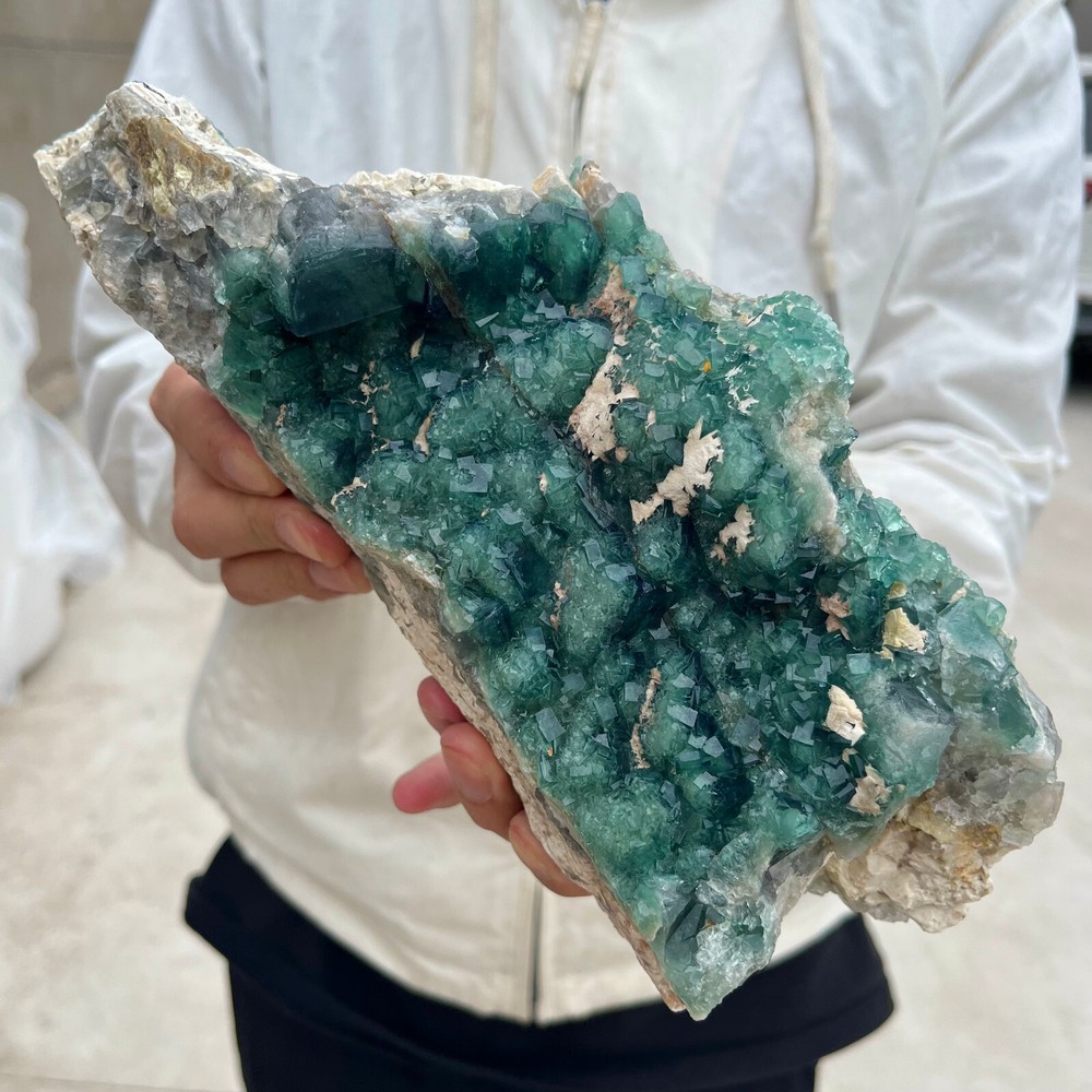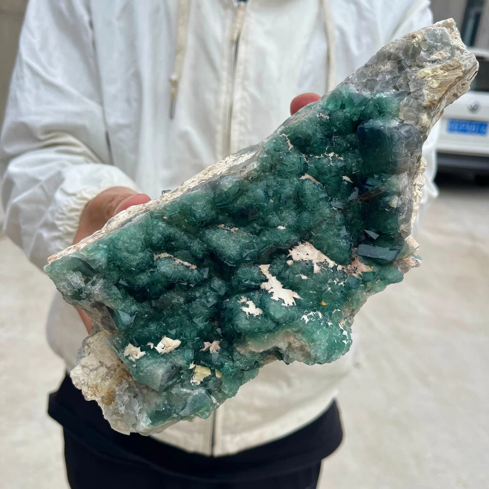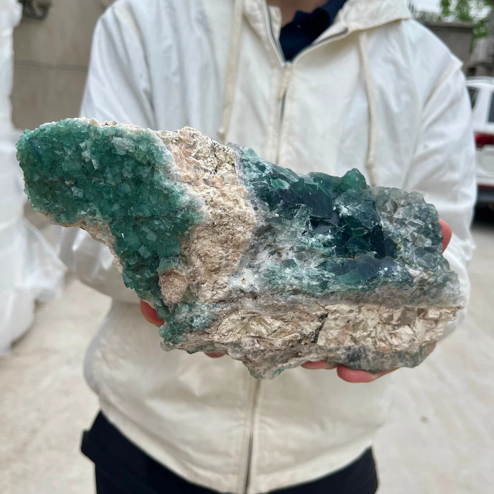5.7LB Natural Green Fluorite Cube Quartz Crystal Cluster Mineral Specimen