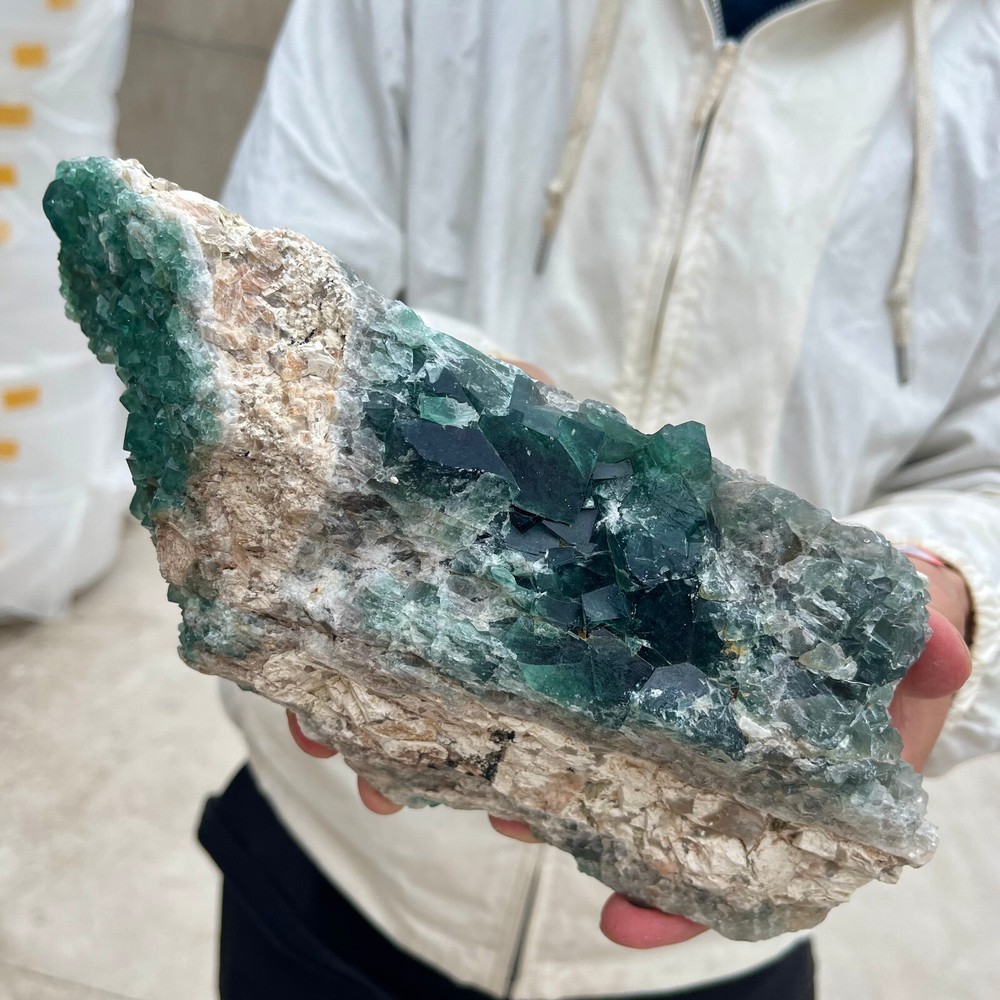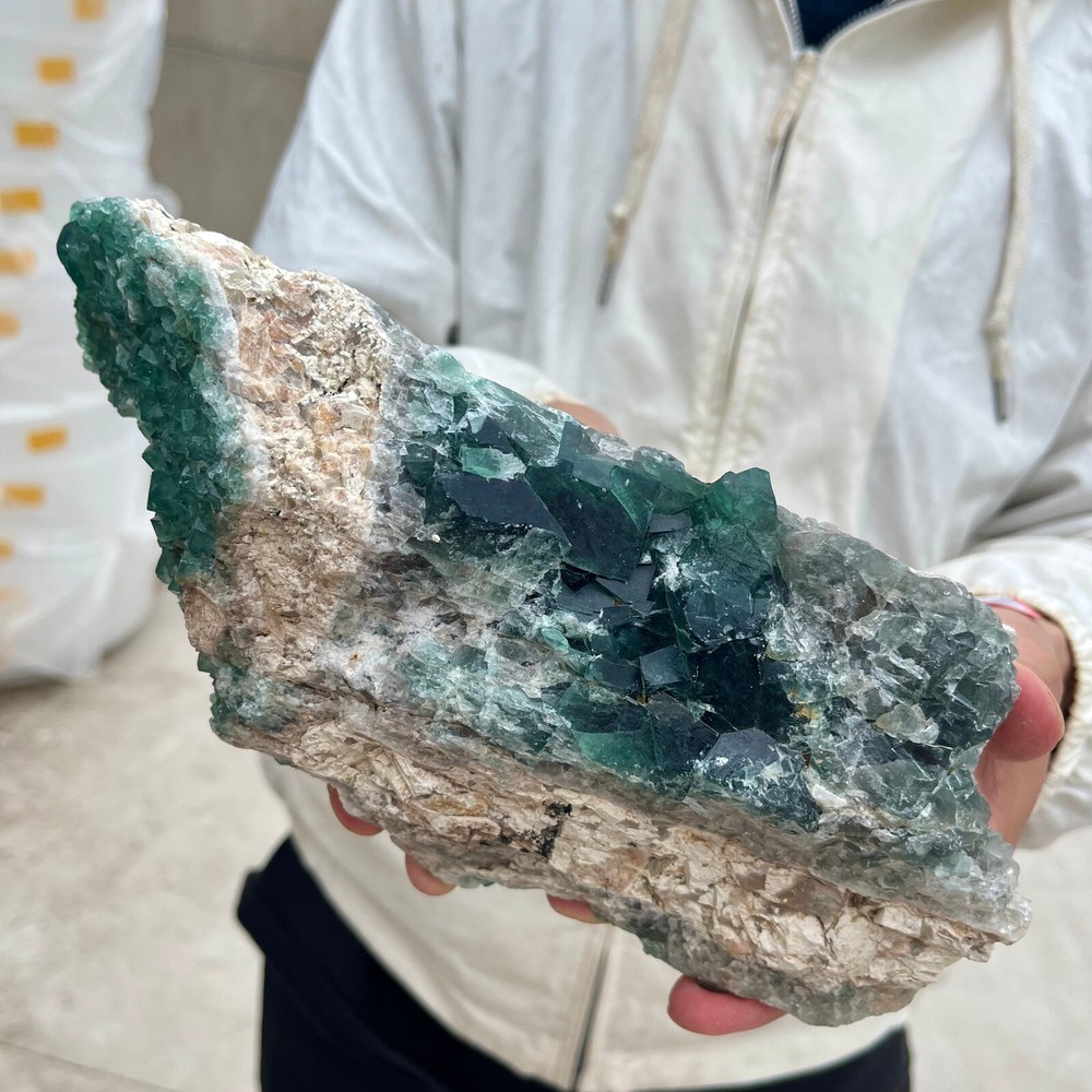 1. Amazing blue green hues in the fluorite. Item got here super quickly and it was wrapped completely in bubble wrap and tape. It looks exactly like the picture. It’s a solid chonk of a rock with interesting white flecks of crystal on the bottom. A+ transaction!!!