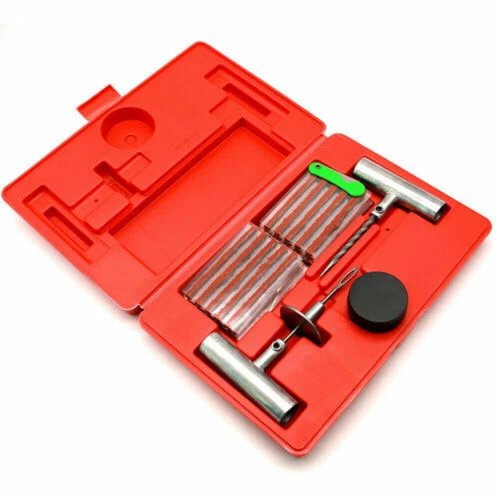 Features: Durable and Safe:Adopting high-grade iron and PE materials,the tire repair tools kit is durable,flexible and not easy to aging. It can withstand the toughest repairing and achieve the best tire air tightness. Economic But Reliable:Our tire repair tools kit totally includes 57 pcs-1pcs T-handle insert tool,1pcs T-handle spiral probe tool,2pcs hex keys,1pcs sealing lubricant,1pcs knife,1pcs carrying case and 50pcs string plugs to repair your tubeless tires. Convenient to Repair:With our tire repair tools kit,you can repair your tire directly instead of removing its rim Easy to Use:Coming with well-equipped tire repair accessories and simple operation steps,you can repair on your own easily. Universal Fits:Can be used to repair punctures for tubeless tires of ATVs,tractors,lawn mowers,trucks,jeeps and cars. Package Contents: 1pc T-Handle Insert Tool 1pc T-Handle Spiral Probe Tool 2pc Hex Keys 1pc Knife 1pc carry case 1pc Sealing Lubricant 50pc String Plugs