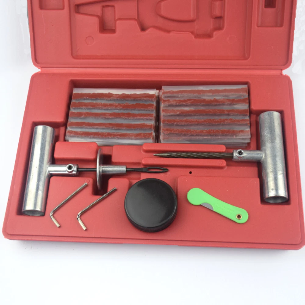 Features: Durable and Safe :Adopting high-grade iron and PE materials,the tire repair tools kit is durable,flexible and not easy to aging. It can withstand the toughest repairing and achieve the best tire air tightness. Economic But Reliable :Our tire repair tools kit totally includes 57 pcs-1pcs T-handle insert tool,1pcs T-handle spiral probe tool,2pcs hex keys,1pcs sealing lubricant,1pcs knife,1pcs carrying case and 50pcs string plugs to repair your tubeless tires. Convenient to Repair :With our tire repair tools kit,you can repair your tire directly instead of removing its rim Easy to Use :Coming with well-equipped tire repair accessories and simple operation steps,you can repair on your own easily. Universal Fits :Can be used to repair punctures for tubeless tires of ATVs,tractors,lawn mowers,trucks,jeeps and cars. Package Contents: 50 adhesive strips 1 bottle of lubricant 2 T - shaped pins 2 inner hexagon wrenches 1 penknife 1 packing box