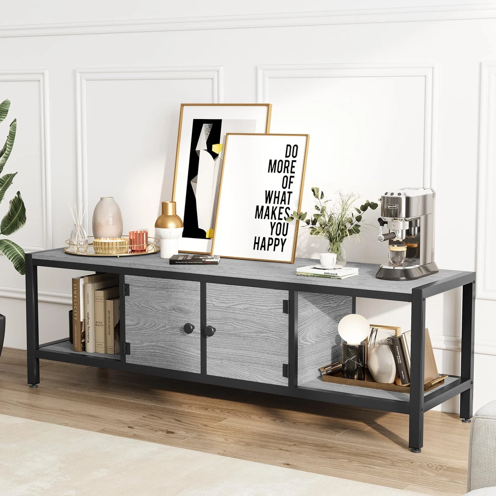 58 Inch TV Stand with Storage,TV Entertainment Center up to 65 Inch, Wooden TV Console with Two Closed Storage Spaces and Open Shelves for Living Room, Grey About this item 1、【Spacious TV Stand】: With dimensions of 58"×15.8"×18.5", this large tv stand with storage is suited to fit TVs up to 75 inches, providing a stylish and functional base for your entertainment setup 2、【Sturdy Construction】: Made from MDF, the TV console is waterproof and scratch-resistant, ensuring durability for everyday use; with a robust metal frame and sturdy feet, it provides reliable stability and can support a load weight of up to 300 lbs 3、【Ample Storage Space】: This bedroom tv stand features two closed storage cabinets and two open shelves, providing ample storage space for your media devices, books and decorative items while keeping your living area organized and stylish 4、【Adjustable Feet】: Featuring adjustable legs, this media console table can adapt to different ground heights, allowing you to create a stable and level surface on uneven flooring, ensuring optimal functionality and support 5、【Easy Assembly】: The tv stand for living room comes with clear, step-by-step assembly instructions and all needed installation accessories, allowing you to set it up quickly and easily without the need for professional help Free Shipping to Most US area! Please note that Certain automotive parts may be subject to regulatory restrictions in the state of California (CA), which can prevent us from shipping these items to addresses within CA. Destinations including Puerto Rico (PR), U.S. Virgin Islands (VI), Guam (GU), Northern Mariana Islands (MP), (AS) , (AK) ... are considered U.S. territories but may be subject to extended delivery timelines and additional shipping fees due to their remote locations. We encourage customers placing orders to these areas to contact us prior to completing your purchase, so we can confirm shipping availability and any potential surcharges. Thank you for your understanding. On Feb 5, 2026 at 08:20:22 PST, seller added the following information: