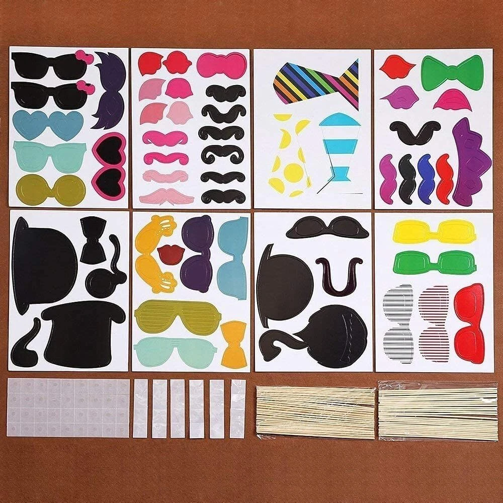 58 Pcs Party Props for Photo Booth - Fun Mustaches, Hats, Glasses, and Bowties.