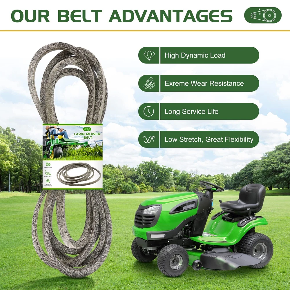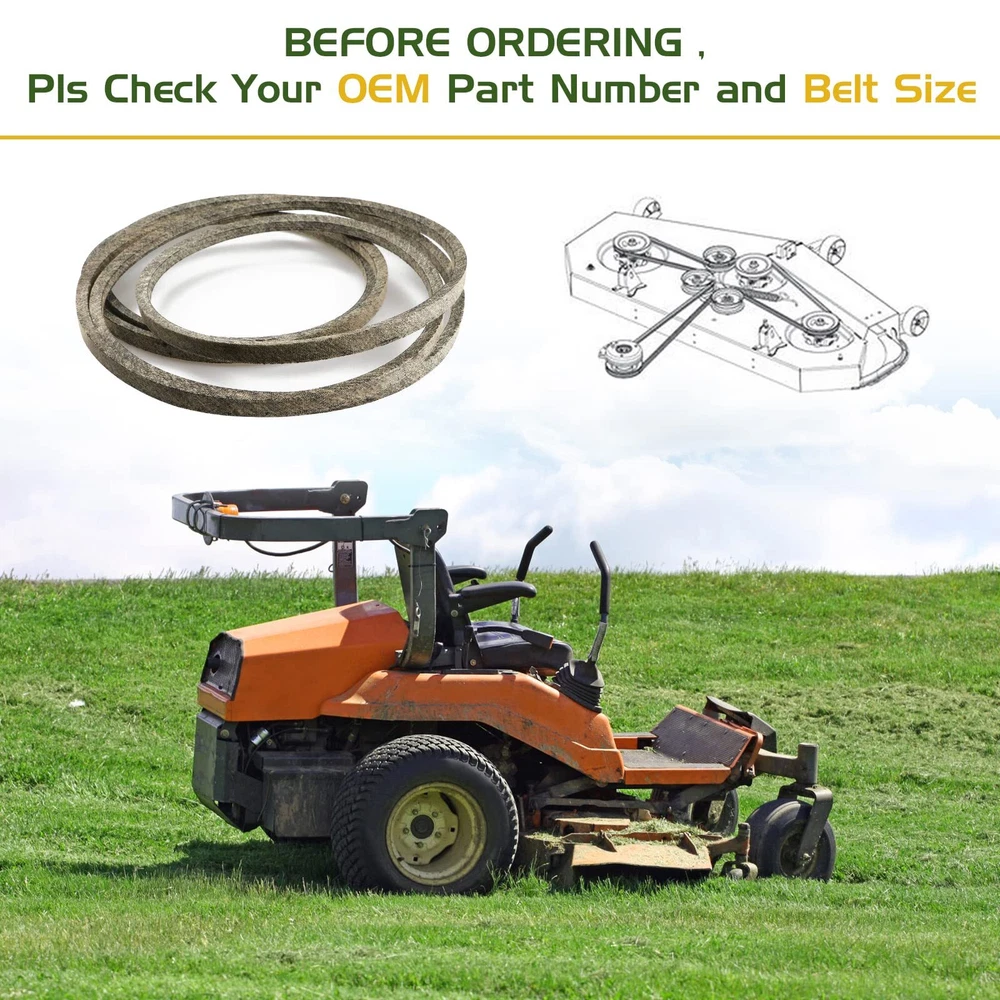 Description Note: Our Belts Have a High Resistance to Repeated Reverse Flexing, Oil, Heat and Cracking, Prevent Breakage. Belt Application: Deck (Mower Cutting Deck Belt ) Cutter Belt Type: Covered Width: 5/8" Length: 134" Replaces OEM: Cub Cadet: 754-04077, 954-04077, 954-04077A MTD: 754-04077, 954-04077, 954-04077A Toro: 112-0332 Troy-Bilt: 754-04077, 954-04077 Fits Models: Cub Cadet: i1050 tractor, 2008-2010; 17AF9BKP010, 17AF9BKP056, 17AF9BKP009, 17WF9BK010; LGT1050, 13WQ92AP010, LGTX1050, 2012; 13WS92AP010, 13WS92AP056; LT1050, 2007 and older; 13Q11CP709, 13AQ11CP712, 13AQ11CP710, 13AP11CP710, 13AP11CP709, 13AP11CP756, 13RP11CP756; SLT1550, 2007 and older; 13AQ11BP756, 13AQ11BP710, 13RQ11BP756; SLTX1050, 2010 and 2011; 13WQ92AP010 and 13AQ92AP010 with 50" deck Toro: GT2100, GT2200 and LX500, 2005 and 2006, with 50" deck Yardman: 13AA925P004 and 13AP925P004, 2010 and 2011 and 14AK811P705, 2005 Package Include: 1pc belt 【Belt Application】: Deck Width[in]: 5/8" Outside Length[in]: 134". 【Replaces Number】: fits for Cub Cadet: 754-04077, 954-04077, 954-04077A MTD: 754-04077, 954-04077, 954-04077A Toro: 112-0332 Troy-Bilt: 754-04077, 954-04077 【Replaces Number】: Woods 18879, 18879RP, Ariens 07234600. Husqvarna 574845602. Hustler 771634. Toro 112-7376 【Fit Models】Fits for Cub Cadet: i1050 tractor, 2008-2010; 17AF9BKP010, 17AF9BKP056, 17AF9BKP009, 17WF9BK010; LGT1050, 13WQ92AP010, LGTX1050, 2012; 13WS92AP010, 13WS92AP056; LT1050, 2007 and older; 13Q11CP709, 13AQ11CP712, 13AQ11CP710, 13AP11CP710, 13AP11CP709, Protective Cover is Made of a Synthetic Rubber Aramid Cord Fiber Compound Having Excellent Resistance to Heat,Oil and Abrasion.