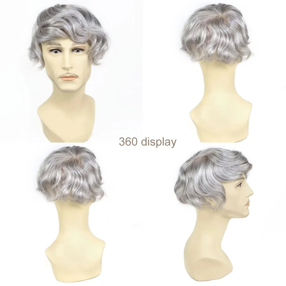 $ 23.71Grey Human Hair Toupee for Men Breathable Mono Lace Mens Wig System Hairpiece