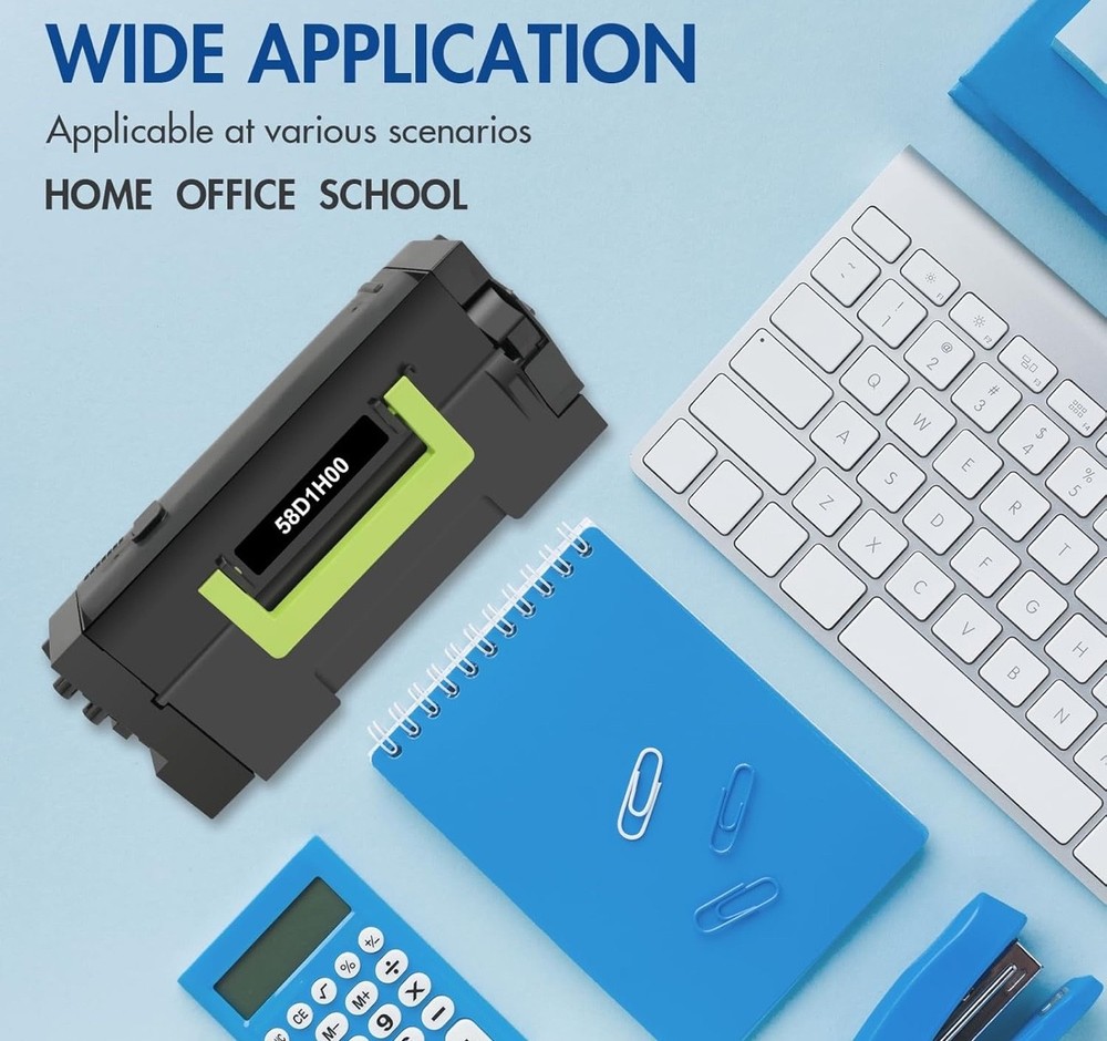 #2741 58D1H00 Black Toner Cartridge 58D1000 MS821dn Remanufactured Compatible for Lexmark 58D1H00 MS821n Black Toner for MS725 MS821 MS822 MS823 MS825 MX721 MX722 MX822 MX826 Printer (15,000 Pages, 2-Pack) Brand SMILINK Color 58D1H00 Black Toner Cartridge*2 Compatible Devices MS725dvn, MS821n, MS821dn, MS822de, MS823n, MS823dn, MS825dn, MS826de, MX721ade, MX721adhe, MX722ade, MX722adhe, MX822ade, MX822adxe, MX822adtfe, MX826ade, MX826adxe Manufacturer SMILINK-for-Lex'mark 58D1H00 black toner cartridge Included: 2 Pack 58D1H00 58D1000 toner cartridge Page Yield: Up to 15,000 pages per 58D1H00 Black Toner Cartridge (Letter/A4, at 5% Coverage) Compatible for Lexmark Printer: MS725 MS821 MS822 MS823 MS825 MX721 MX722 MX822 MX826 Series Printer Package Contents: 2 Pack 58D1H00 Black Toner Cartridge SMILINK 58D1H00 black toner cartridge continues to offer you a printing experience of high quality and economic affordability Compatible for Lexmark Printer: MS725 MS821 MS822 MS823 MS825 MX721 MX722 MX822 MX826 Series Printer