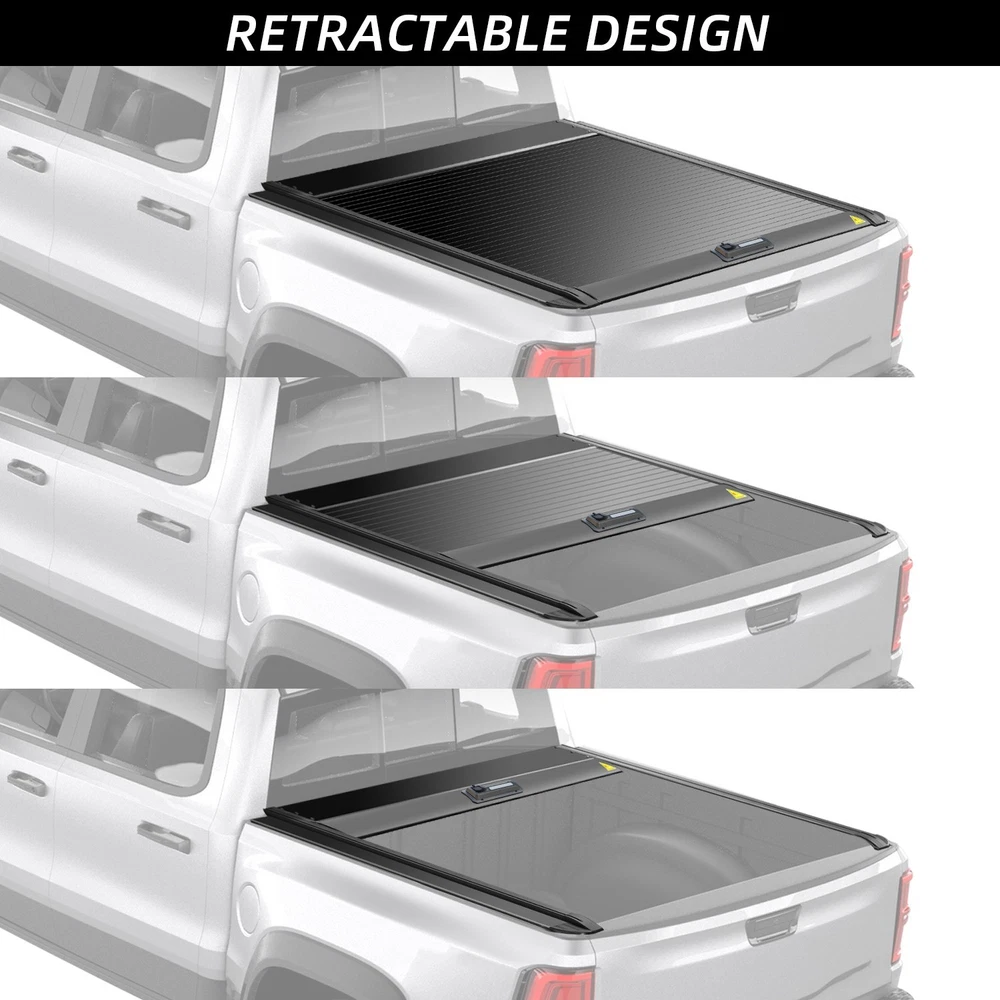 FRIENDLY REMINDER (Many returns are caused by ordering the wrong size) | The Silverado 1500/GMC sierra 1500 comes in tow different bed lengths. This retractable truck bed cover is only compatible with the 5.8 ft short bed—it will not fit the 6.5 ft or 8.0 ft versions. Since return shipping for large items can be costly, please double-check your bed length before purchasing to avoid unnecessary fees. CUSTOM MODEL | The 5 feet 10 inches Short truck bed cover is precisely engineered to be compatible with the 2010-2026 Silverado 1500(incl. GMC Sierra 1500), without causing hindrance to its automatic tailgate feature. EASY INSTALLATION | After assembling the rails, place them on the truck bed, adjust the position, and then secure the brackets. The entire installation process takes approximately 30-60 minutes. Please refer to the installation video and manual before installation to help you complete the process more easily. INSTALLATION VIDEO: It is highly recommended that you watch the full installation video provided in the product link or search for “SADELOOS installation” on YouTube. Combined with the installation manual, this will be extremely helpful for your installation process. EASY OPERATION | Once unlocked, the cover automatically retracts into the housing, eliminating the need to walk to the truck and manually push the handle. The pull strap allows for easy closing and locking of the cover. Once pulled back, the cover automatically locks and can only be unlocked by opening the tailgate, ensuring the security of your personal belongings while being very convenient to use. THREE-POSITION HOVER | The cover can be controlled by the pull-cord to hover at three different positions, allowing for easy loading of oversized items without obstruction. ULTIMATE PROTECTION | This truck bed cover features a wide rails design and sturdy aluminum slats coated with a matte double-layer black textured powder coat. It comes equipped with an integrated water management system to shield against rain, snow, and dirt. Proper installation ensures virtually leak-proof performance. EXPANDABILITY | The Bestwyll retractable truck bed cover is equipped with the Trax Rail System, featuring a single-rail dual T-slot design that enhances compatibility and stability. (T-slot accessories sold separately.) WORRY-FREE SERVICE | With over 11 years of experience in designing and manufacturing truck accessories, SADELOOS is a trusted partner for many internationally recognized truck brands. We always put our customers first, delivering high-quality service and support to ensure your complete satisfaction. If you ever have any questions or concerns, feel free to reach out to us anytime. 【 Multi-function】This cargo cover has side rails with T-slots on both sides. If you like to install shelves or other gantries, you can also add them to the cargo cover, which is very compatible. At the same time, there is an LED light under the password lock, which is perfect for nighttime camping. 【Convenience】: Never worry about forgetting to bring your keys or losing them. You can also let your friends open the cover remotely, just tell him the password. You can also change the password at any time. If you forget the password, please contact us in time and we will help you find it back. 【Retraction System】: The telescopic function of this cargo box cover allows you to easily and conveniently enter the truck compartment. Just pull or push to retract or unfold the cover and load and unload cargo easily. This versatility makes it suitable for various types of transportation needs. 【Weatherproof】: The surface of the cargo box cover adopts aluminum structure, and there are waterproof strips between the aluminum strips, which has excellent resistance to weather factors such as rain, snow, UV rays and dust. The cover forms a sealed barrier and is equipped with a drain pipe system to effectively drain water, keep the cargo dry and protected, and ensure that it can be kept in the best condition even in adverse weather conditions. 【Durable Aluminum Structure】: This cargo box cover is made of high-quality aluminum to withstand the rigors of daily use. The sturdy construction ensures long-lasting durability, making it a reliable choice for truck owners who need a strong and durable cargo cover. 【Safe and Reliable】: The aluminum telescopic cargo cover comes with a built-in locking device to provide enhanced security for your truck bed and cargo. You can rest assured that your belongings are safely stored and protected from theft. 【Stylish Streamlined Design】: The aluminum telescopic cargo cover adopts a stylish and streamlined design, which not only adds a sense of style to your truck, but also reduces wind resistance, thereby improving fuel efficiency. Its low-profile appearance enhances the overall beauty of the vehicle. Material Aluminum Alloy Operation Retractable, Manual password lock Cover Type Hard Type Waterproof Function Locking, No Drill Installation, Waterproof Product Name Retractbale tonneau cover Car Model Pickup Truck Types Product name Retractbale tonneau cover Type Accessories Tonneau Cover Color BALCK Installation No-drilling Installation Style Retractable Tonneau Roll Cover Function Waterproof,dust-proof Car Fitment truck accessories Weight 37KG Features Easy Product name truck accessories Material Aluminum alloy Color Black Brand name Willmoso Type Manual & Automatic Delivery time 2-3 days Package Carton box Quality 100% high quality Payment TT,Western Union,Paypal