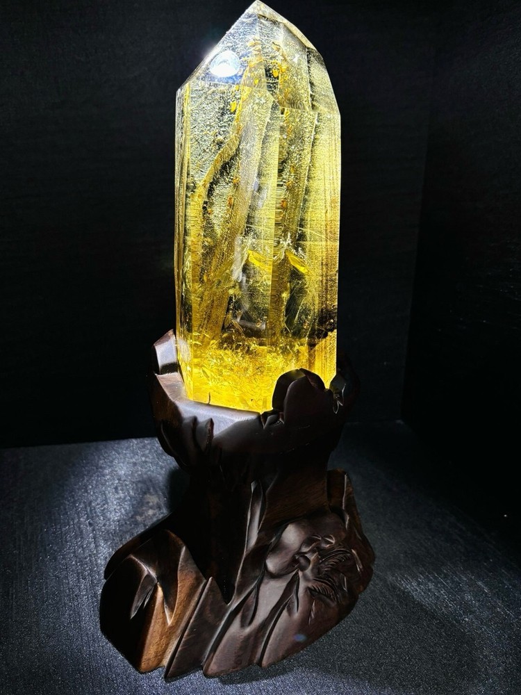 5.8LB Natural Citrine Quartz Obelisk Raw Crystal Wand Point Healing Tower with Stand