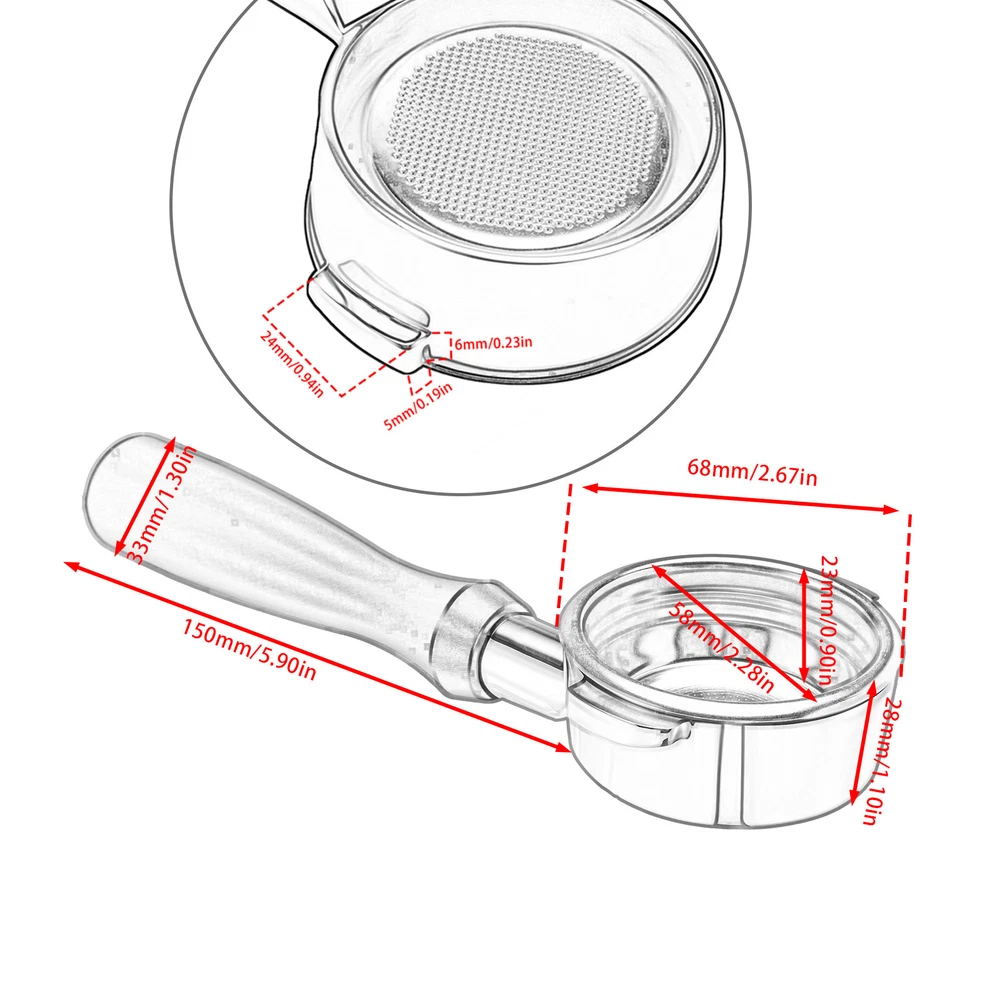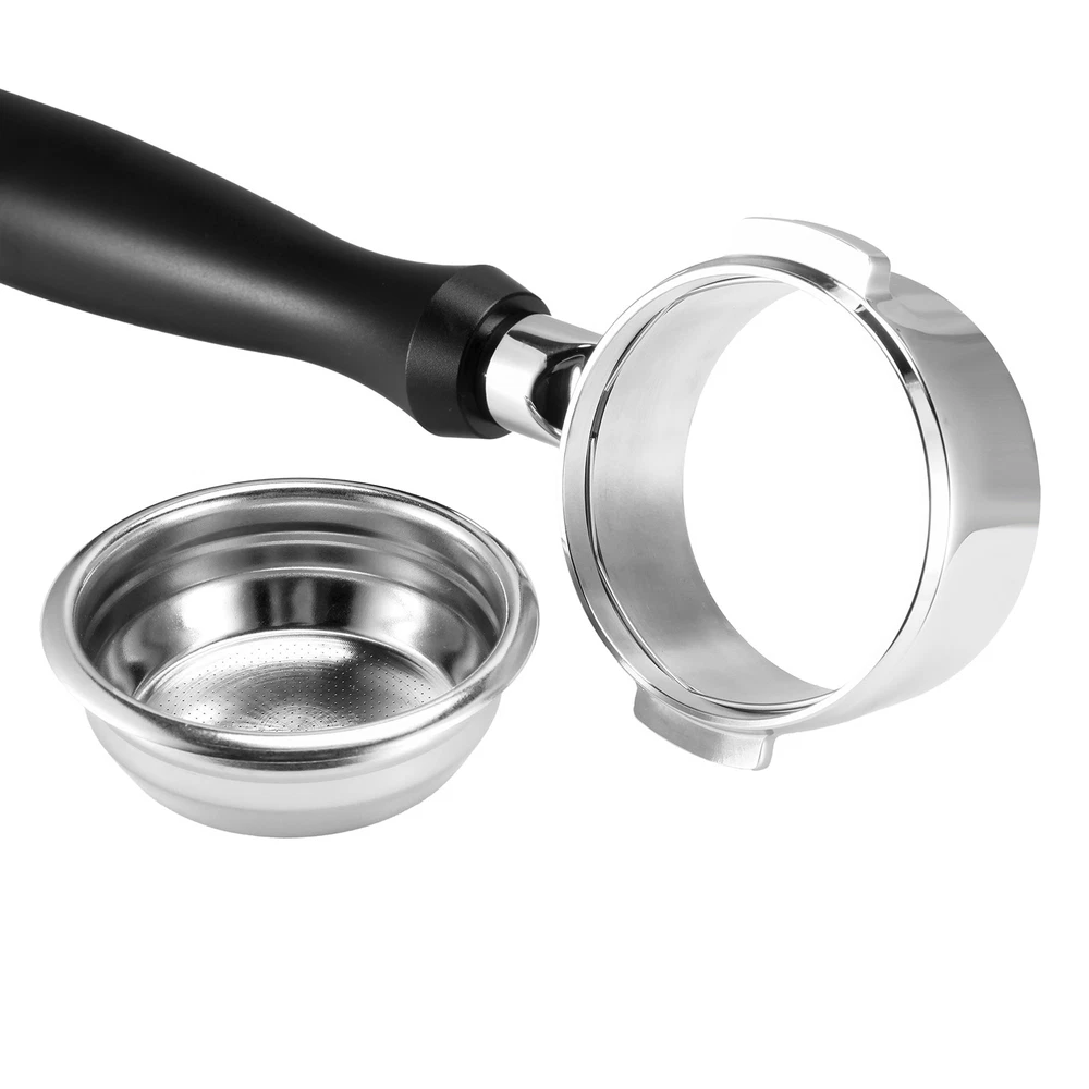 58mm Bottomless Portafilter For Breville BES920 BES990 BES980 Coffee Filter Descriptions: --High Quality: Made of food-grade 304 stainless steel its exceptional resistance to oxidation, corrosion, and rust, which ensures that your coffee stays free from any unwanted impurities. --Filter Basket & Puck Screen: Includes two removable filter basket and a puck screen. The puck screen reduces splashing and prevents coffee grounds from contacting the group head, keeping it clean. --Ergonomic Design: The handle is made of aluminum alloy which provide a natural grip, ergonomic design also ensure that it remains stable extracting process. --Detachable Espresso Portafilter: The filter basket and aluminum handle of this portafilter can be disassemble, convenience to clean. --Supplied with Puck Screen magnet: Easy to remove the puck screen. Specifications: Condition: Brand New Type: Bottomless Portafilter Material: Stainless Steel + Aluminum Size: 58mm Color: Chrome + Black Fitment: Compatible with Breville BES990, BES980,BES920 Package Includes: 1 x Portafilter 1 x 58mm Double Shot Basket 1 x 58mm Puck Screen 1 x Puck Screen Magnetic Removal Tool