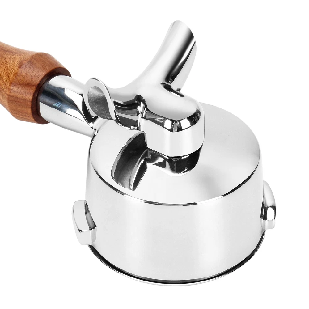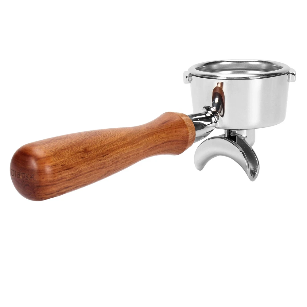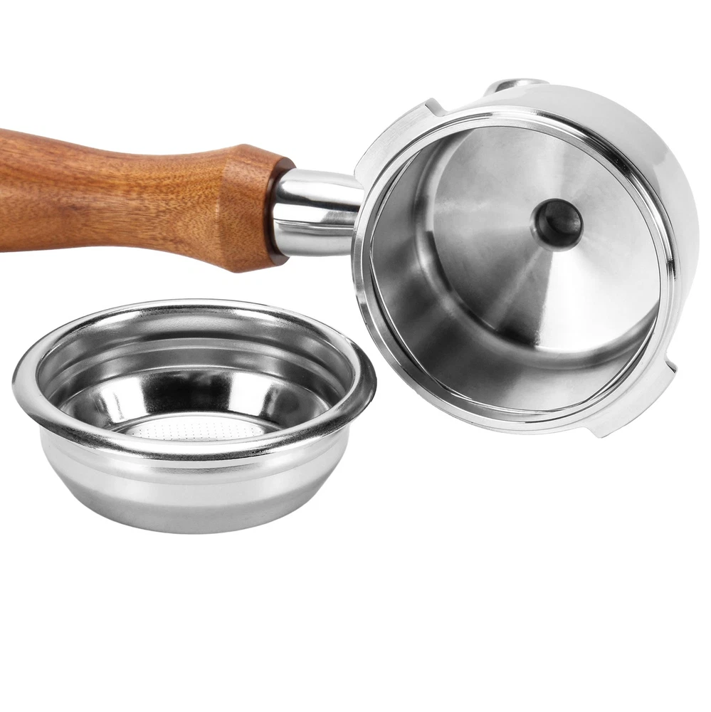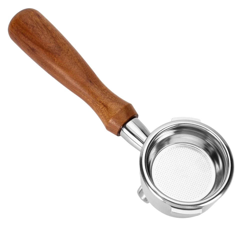 58mm Double Spouts Coffee Portafilter For Gaggia Espresso Filter Wood Handle Descriptions: --This coffee portafilter is design with double spouts, which allows you to make two espresso cups at the same time without coffee residue. Perfect for use at cafe or home which with many members, can improve the efficiency of coffee making --Made of food-grade 304 stainless steel, its exceptional resistance to oxidation, corrosion, and rust, which ensures that your coffee stays free from any unwanted impurities. --The handle is made of solid wood which provide a natural grip, ergonomic design also ensure that it remains stable extracting process. --The filter basket and wood handle of this dibtsa portafilter can be disassemble, convenience to clean. Specifications: Condition: Brand New Type: Double Spout Portafilter Material: Wood + Stainless Steel Size: 58mm Color: Silver Fitment: Compatible with Gaggia Carezza, Gaggia Cubika Plus, Gran Gaggia Prestige, and Gran Gaggia Deluxe, BABY CLASSIC/NEW BABY Package Includes: 1 x 58mm Portafilter