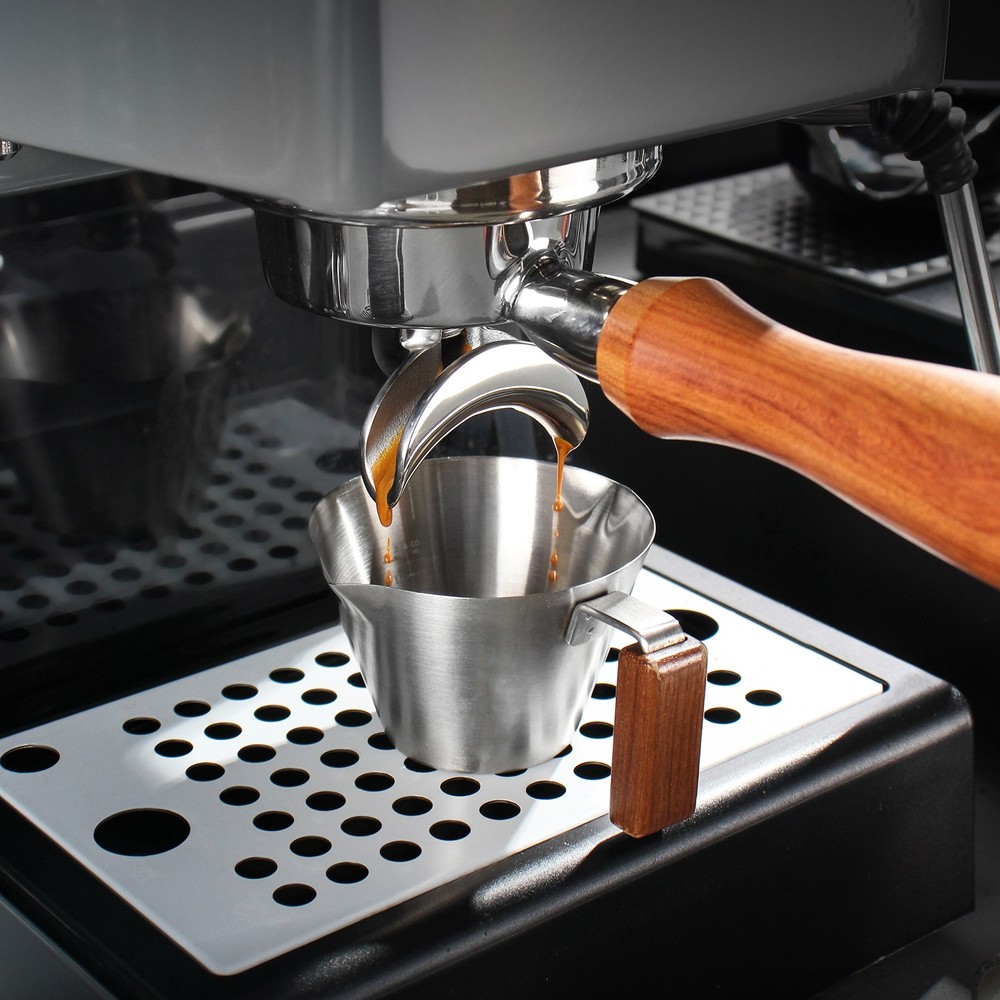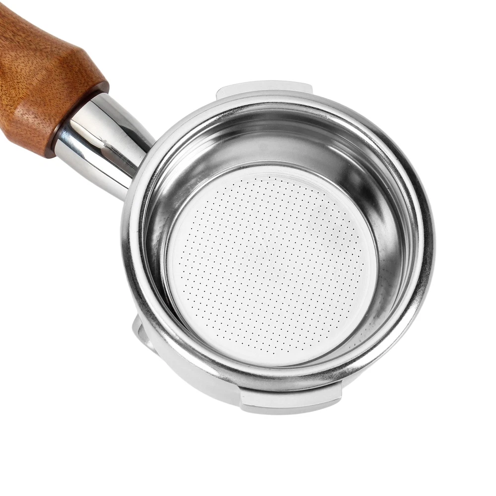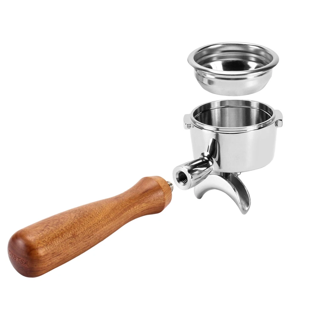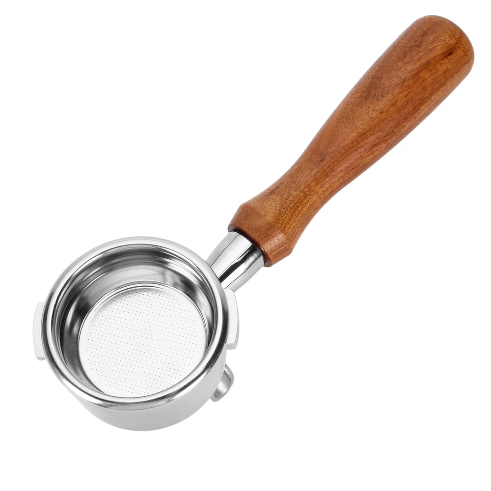 58mm Double Spouts Coffee Portafilter For Gaggia Espresso Filter Wood Handle Descriptions: --This coffee portafilter is design with double spouts, which allows you to make two espresso cups at the same time without coffee residue. Perfect for use at cafe or home which with many members, can improve the efficiency of coffee making --Made of food-grade 304 stainless steel, its exceptional resistance to oxidation, corrosion, and rust, which ensures that your coffee stays free from any unwanted impurities. --The handle is made of solid wood which provide a natural grip, ergonomic design also ensure that it remains stable extracting process. --The filter basket and wood handle of this dibtsa portafilter can be disassemble, convenience to clean. Specifications: Condition: Brand New Type: Double Spout Portafilter Material: Wood + Stainless Steel Size: 58mm Color: Silver Fitment: Compatible with Gaggia Carezza, Gaggia Cubika Plus, Gran Gaggia Prestige, and Gran Gaggia Deluxe, BABY CLASSIC/NEW BABY Package Includes: 1 x 58mm Portafilter