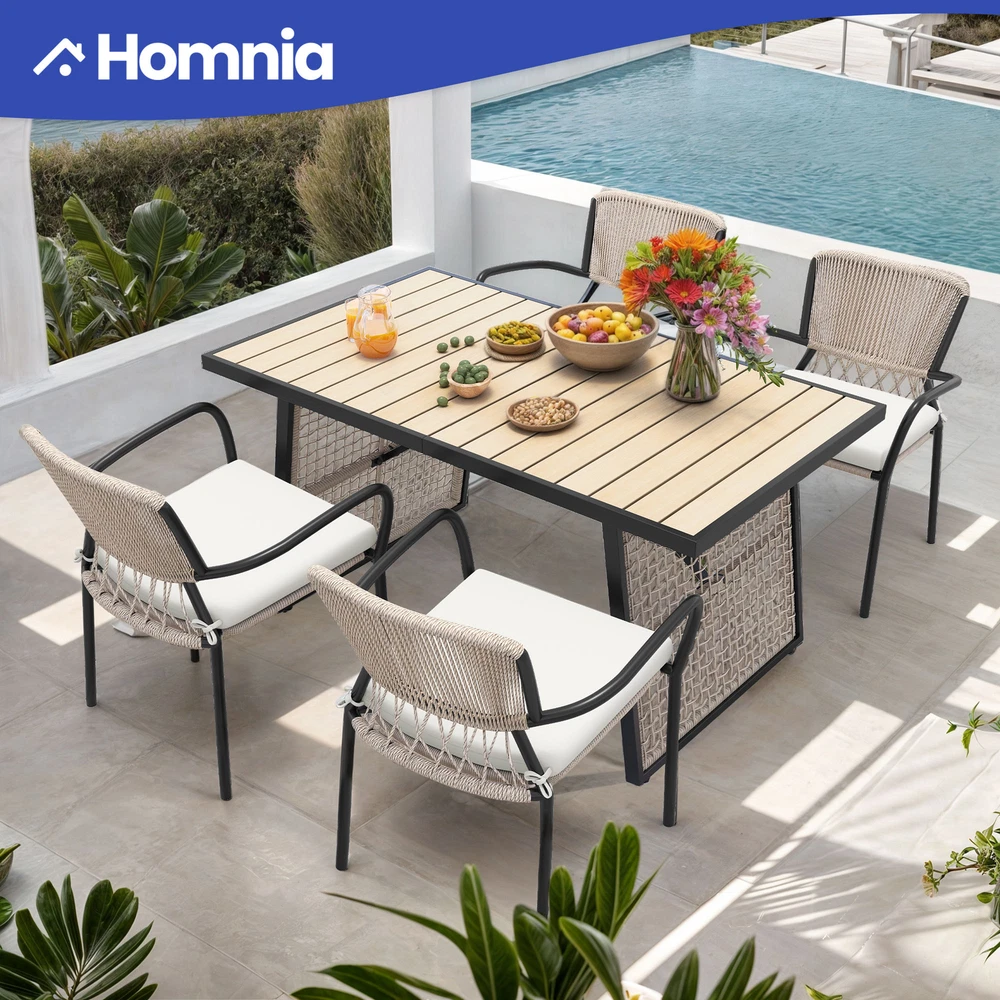 MPN: BEYSHxHHKu Item Width: 34.3 in Color: Brown Item Depth: 34.3 in gtin13: 197839049222 Item Length: 59 in Brand: Homnia Material: Iron, Plywood, Rattan Mounting: Freestanding Features: Adjustable Height, Folding, Wheater Resistant, Scratch Resistant, Easy to Clean, Sturdy Materials, Supports up to 250 lbs Additional Parts Required: No Style: Contemporary/Modern Number of Shelves: 1 Shape: Rectangular Theme: Nature Era: 21st Century (2000-Now) Wood Tone: Light Wood Set Includes: Dining Table Item Height: 29.5 in Item Weight: 64 lb Department: Adults UPC: 197839049222 Manufacturer Warranty: 1 Year Seating Capacity: 4 Number of Items in Set: 1 Room: Dining Room, Porch Pattern: Solid