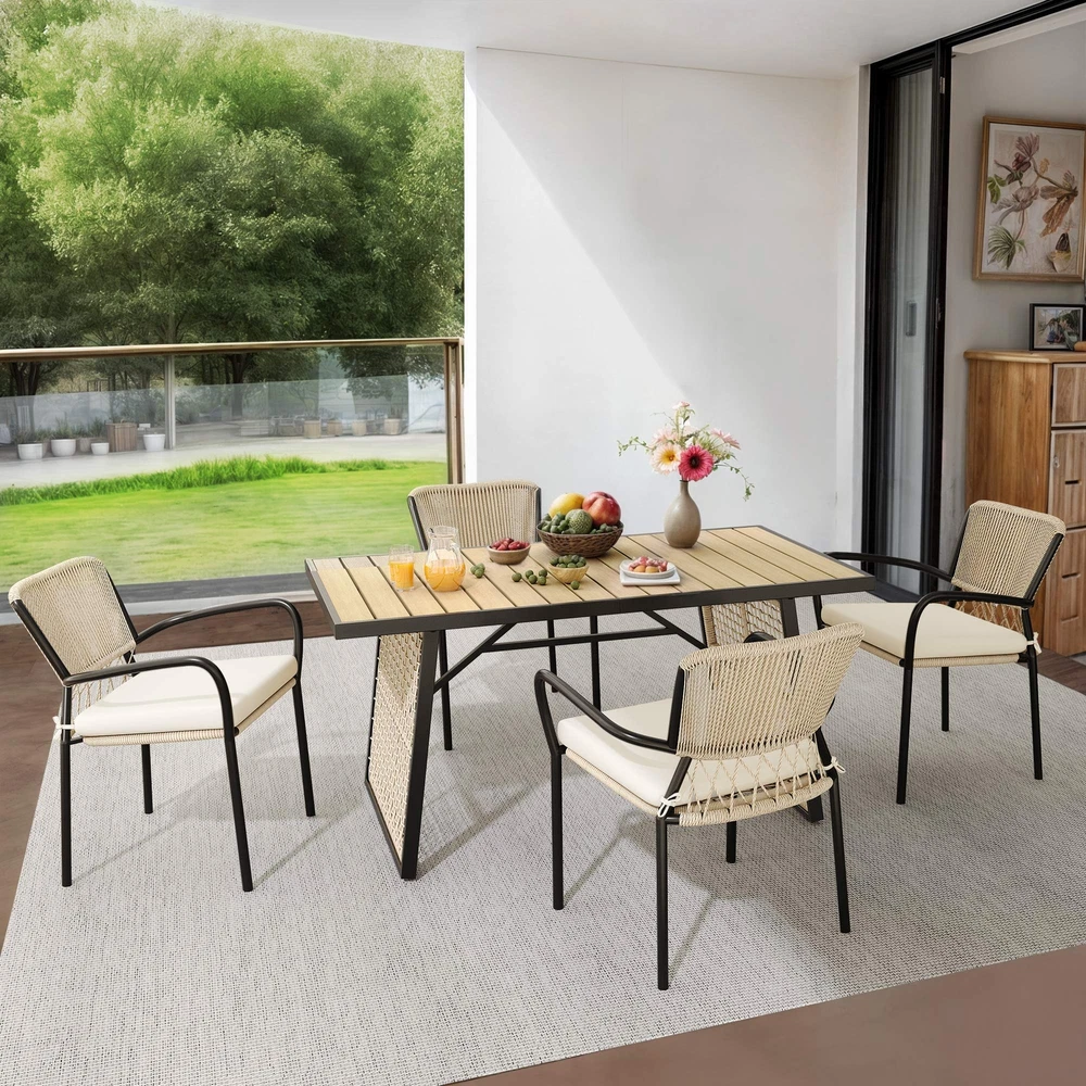 59" Dinner Table 6 People Dining Room Faux Wood Kitchen Patio Porch Gatherin