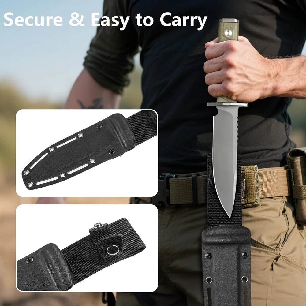 10.4" Best Fixed Knife : Ultra-sharp combat knife, Overall Length: 10.4 inch; Blade Length: 5.9 inch; Weight: 9.7 oz Sharp Steel Blade : Fixed knife CPM 3V blade steel sharp knife with hardness up to 58-61 HRC for ultimate precision cutting with solid toughness and excellent edge retention Ergonomic Full Tang Design : G10 handle ensures excellent grip in any condition, while full tang construction provides lasting stability and durability for all cutting tasks Hunting Knives with Kydex Sheath : The bushcraft survival knife includes tactical polypropylene sheath that locks the knife securely. Easily attach it to your belt for quick access and safe carrying Wide range of uses : This versatile knife is perfect for tactical, survival, outdoor, and hunting uses, meeting all your cutting needs. It's an excellent gift for any knife enthusiast Product Description 0006 cpm 3v Fixed Blade Knife Shipping We offer FREE shipping on all orders! We ship within Three business days of payment, usually sooner. We use a selection of shipping services such as UPS, FedEx, USPS etc. Local pickups and combined shipping options are not provided at this time. Return You can return a product for up to 30 days from the date you purchased it. Any product you return must be in the same condition you received it and in the original packaging. Please keep the receipt. Payment We accept payment by any of the following methods: PayPal Please pay as soon as possible after winning an auction, as that will allow us to post your item to you sooner! Feedback Customer satisfaction is very important to us. If you have any problem with your order, please contact us and we will do our best to make you satisfied. Contact Us If you have any queries, please contact us via ebay. We usually respond within 24 hours on weekdays. Please visit our eBay store to check out other items for sale! Thank you for shopping at our store. Disclaimer We are working with different suppliers in usa to deliver the item to your doorstep. If you have any issues regarding the item, Feel free to ask.