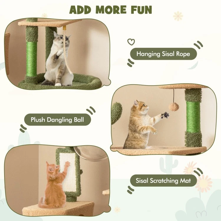 🌿 Tree-Inspired Cat Activity Center Bring nature indoors with this charming tree-inspired cat tower! Designed with soft green plush “leaves,” a cozy brown “tree trunk,” and a playful faux plant topper, it instantly adds warmth and style to your space. 🐾 Why Cats Love It 🌟 Play & Relax in One Place Top perch, cozy sunken bed, jumping platforms, plush ball, and sisal ropes keep cats entertained while offering perfect spots for rest. 🧶 Supports Natural Instincts Sisal-wrapped posts encourage healthy scratching, while the built-in self-groomer helps reduce shedding and stress. 🛡️ Safe & Stable Design Anti-tip device and enlarged base provide strong stability for worry-free play. ☁️ Ultra-Soft Comfort Wrapped in soft plush fabric that feels gentle on paws and fur—perfect for lounging all day. 🧼 Easy to Clean Removable, washable top perch keeps the space fresh and hygienic. ✨ Perfect for : Playing, scratching, climbing, napping 🐱 Ideal for : Small to medium cats 🏡 Style : Cute, natural, home-friendly design