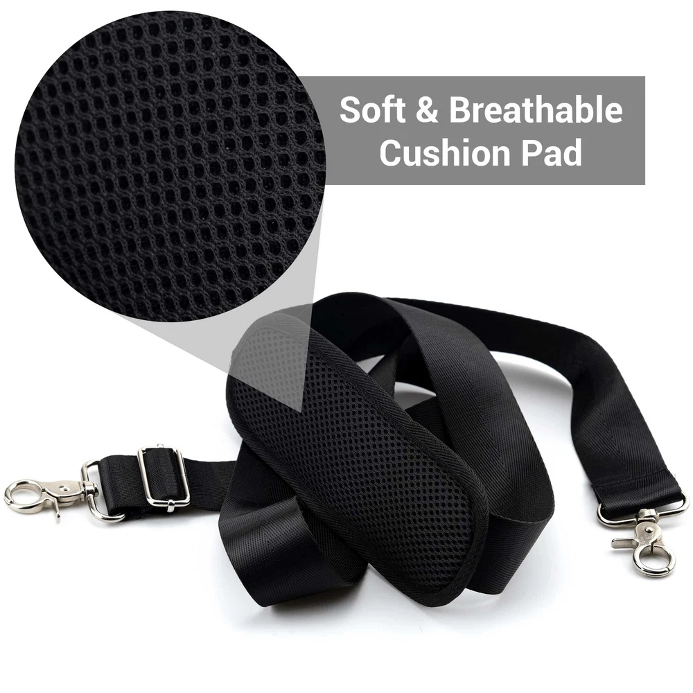 Description Shoulder Strap Replacement Specifications Material: high-quality nylon Size: 59 inches (150 cm) in length, it can be adjusted from 34" to 59" (86cm to 150cm) in length The package includes: 1 Pcs x Shoulder Strap The adjustable strap is made of high-quality nylon material, so you can rest assured that it will be comfortable and durable. Plus, it is easy to use, just attach and detach the clips easily as needed. So why wait? Give your shoulders a break with this amazing shoulder strap today! What Makes Our Shoulder Straps The Best? SHOULDER STRAP FOR LAPTOP BAGS - The package includes a shoulder strap that can hold heavy loads safely. You can easily attach the shoulder strap with the easy put-on and put-off secure clips to your bag which can make carrying your bag lighter and more comfortable. LONG & ADJUSTABLE SHOULDER STRAP - The shoulder strap is 59 inches (150 cm) long and adjustable. The universal size can be adjusted from 34" to 59" (86cm to 150cm) in length according to your needs for the perfect fit. It is long enough for crossbody use. STURDY & LONG LASTING - The laptop shoulder strap is made of high-quality nylon, soft, sturdy, lightweight, wear-resistant, long-lasting, and suit for long-term carrying. With its premium build, you can use the strap for years. The non-slip surface prevents the strap from sliding off the shoulder. SATISFACTION GUARANTEED We want you to be happy with your laptop bag shoulder straps, and we're committed to making sure you're happy with your purchase. If for any reason you're not satisfied, just let us know and we'll gladly offer a refund. Order your shoulder strap replacement for laptop bags now! SHOULDER STRAP FOR LAPTOP BAGS - The package includes a shoulder strap that can hold heavy loads safely. You can easily attach the shoulder strap with the easy put-on and put-off secure clips to your bag which can make carrying your bag lighter and more comfortable. LONG & ADJUSTABLE SHOULDER STRAP - The shoulder strap is 59 inches (150 cm) long and adjustable. The universal size can be adjusted from 34" to 59" (86cm to 150cm) in length according to your needs for the perfect fit. It is long enough for crossbody use. STURDY & LONG LASTING - The laptop shoulder strap is made of high-quality nylon, soft, sturdy, lightweight, wear-resistant, long-lasting, and suit for long-term carrying. With its premium build, you can use the strap for years. The non-slip surface prevents the strap from sliding off the shoulder. FASHIONABLE STRAP FOR BAGS - The stylish shoulder strap is elegant and fashionable. It is the perfect replacement for a broken strap of any cross bag, laptop bag, messenger bag, duffel bag, guitar bag, camera bag, luggage bag, sports bag, diaper bag, iPad case, notebook case, etc. SECURE CLIPS & SHOULDER PAD - Thick cushion padded shoulder strap with metal clips makes your bag more comfortable when carrying it on your shoulder. The secure clips are made of high-quality metal and have 360 rotation which will keep your bags firm and secure.