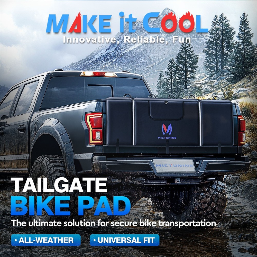 Tailgate Pad Bike Rack for 5-Bikes Tailgate Pad Pickup Truck Bed Protector Cover MICTUNING Tailgate Bike Pad for Mountain Bike, Secure 5 Bikes on Truck, with Reflective Strips and Tool Pocket, for Outdoor Bicycle Transportation About the item: Secure Transport for up to 5 Bikes - Our 50"L X 16.5"H X 8.25"D Tailgate Pad Features Adjustable Straps That Hold up to 5 Bikes Firmly in Place, Protecting Both Your Truck and Your Bikes from Scratches or Damage During Transport Built for All Weather Conditions - Made from 600d Pvc, the Bike Pad's Waterproof and Abrasion-resistant Outer Layer Protects Against the Elements. the Soft Flannelette Inner Layer, Combined with a Thick Shock-absorbing Pad, Ensures Your Bikes Stay Safe and Steady on Bumpy Roads Enhanced Safety with Reflective Strips - High-visibility Reflective Strips Improve Safety During Nighttime or Low-light Trips, Making Your Truck Easily Noticeable to Other Drivers Backup Camera-friendly Design - Features a Roll-up Window That Aligns with Your Backup Camera, Maintaining Full Functionality for Hassle-free Parking and Navigation Tool Pocket on the Back - Keeps Your Repair Tools and Small Accessories Organized and Easily Accessible, Ensuring You're Always Prepared for Your Outdoor Adventures Payment Delivery details Terms of sales About us Contact us Payment -PayPal - We ONLY ship your item to your PayPal shipping address. If you want your package to be sent to any address other than your Paypal shipping address. -Please state it clearly in the PayPal note section and also confirm with us by sending message. -Payment is expected within 5 days after auction end. This is serious business, so please make sure you are serious before bidding the item. Delivery details -All the orders will be processed within 2 business day after payment received. -Tracking number will be uploaded after we ship it. Please don't worry. -If there's any delivery issue, feel free to contact us in time before file a case. Thanks. Terms of sales Replacement is available for wrong or defective item receipt within the first 30 days , it's free of extra charge. Please contact us for the return procedure. About us Our working time: Beijing Time: 9:30-18:00 from Monday 9:30 to Saturday 18:00 New York Time: 21:30 – 6:00 from Sunday 21:30 to Saturday 6:00 Please just leave us message, we will reply you as soon as possible. Contact us -We will leave positive feedback for each buyer firstly . If you are happy with the transaction, please give all 5-star ratings. Thank you in advance! -We value client service as well as product quality. Please don't leave us any negative feed back if there is something wrong with the product or you just not satisfied with the item. Please just feel free to contact us if there is any issue ,you will receive answer within 24 hours and we will offer the best offer to the issue. -We try our best to provide you happy solution by communication. -Welcome to place order from us! Wish you a happy shopping!