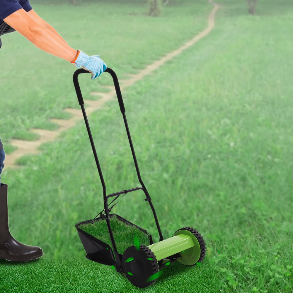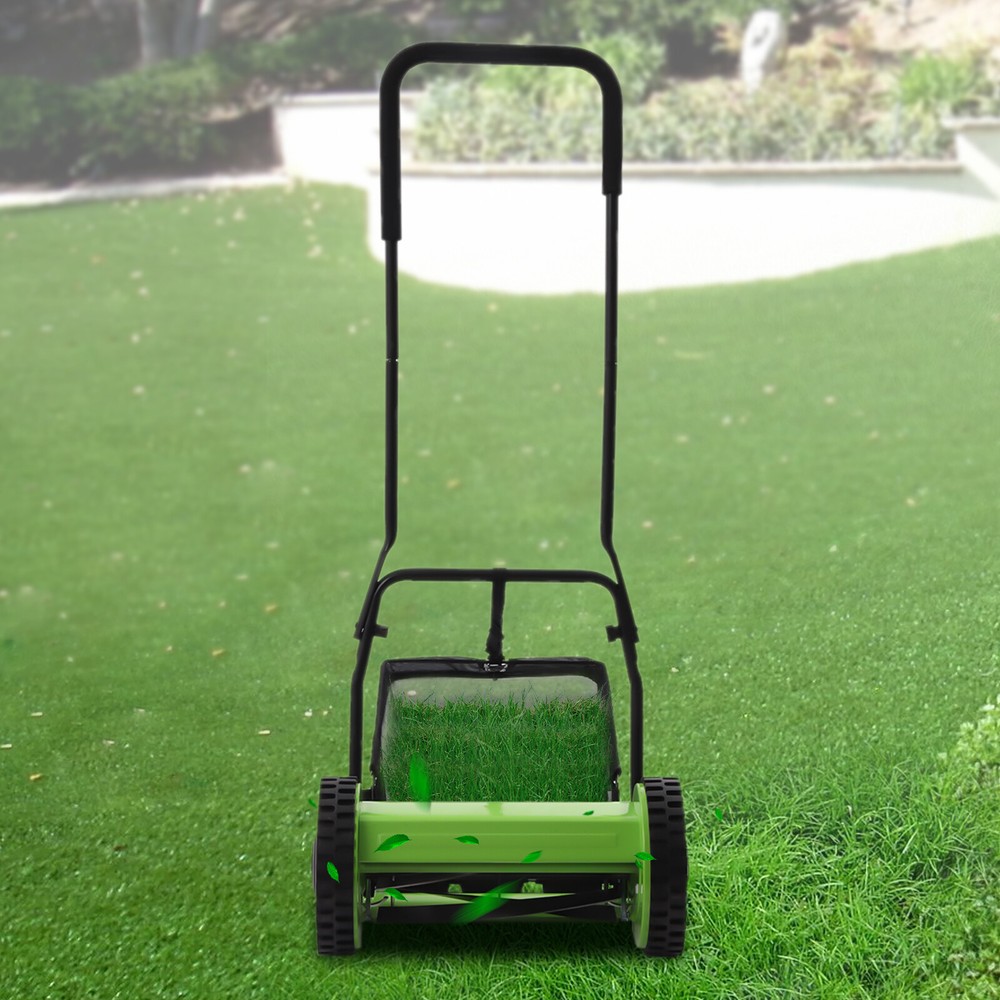 Application The Lawn Mower Has 12inch Cutting Width and Can Cut 17-33mm/0.67 -1.3inch Height of Grass, and Can Be Widely Used for Picking up Leaves, Grass and Debris on Lawns, Sidewalks, Driveways, Courtyards and Sidewalks. Specification Material of Blade: 65 Manganese Steel Material of Bag: Mesh Cloth and Pu Material of Pole: Galvanized Pole Material of Wheel: Plastic Color: Black, Green Power Source: Manual Style: Manual Push Reel Lawn Mower Cutting Width: 300mm/12 Inch Cutting Height Adjustment: 17-33mm/0.67 -1.3inch Collection Bag Capacity: 6 Gallon / 23l Net Weight: 6.9kg/15.22lbs Gross Weight: 7.4kg/16.31lbs Package Size: 48*38*22.5cm/18.9*14.96*8.56inch Wheel Diameter: 27cm / 10.62inch Distance Between Two Wheels: 46cm/18.11inch Length of Tube: 1.2m/3.93ft 5-Blade Dual Wheel Lawn Mower Manual Push Reel Grass Cutting Machine Walk Behind Description Are you still worried that weeds make the garden messy and ugly? Our manual lawn mower can help you solve this problem very well. It has 5 blades with 65manganese steel material, a big nylon material grass catcher, and iron pipes, which is a good assistant in your weeding work and gives you a smooth and beautiful lawn in a short time. Key Features Durable and Sturdy: It consists of 65manganese steel blades with a heat treatment process, a thicken iron U-shaped tube, a nylon grass catcher, and iron extension pipes with an electroplating process, making it wear-resistant , rust-resistant , corrosion-resistant , and sturdy. Large Capacity: The capacity of the grass catcher with a sling is about 6 gallons, which can collect more grass at one time, so you can use it for a long time without frequently removing weeds in the grass catcher. High Working Efficiency: This lawn mower is equipped with 5 manganese steel blades and has a cutting width of up to 11.8 inches. It takes less time to mow the same amount of lawn area, so you get a smooth and tidy lawn in a short time. Adjustable Height: The grass-cutting height is 0.47-1.77 inches, which can be adjusted by a triangle knob behind wheels according to the actual situation of the lawn and your actual needs. It is possible to keep the grass at the same height even on lawns of different heights, making the lawns more neat and beautiful. Easy to Clean: The detachable design and smooth surface make this lawn mower convenient to rinse with water directly, saving your time and energy. User-friendly Design: The U-shaped handle is wrapped with sponge material that can prevent slipping and protect your hands. Also, the two 8.46-inch diameter wheels with grooves surface make it have high friction force and anti-slip , allowing you to push it easily on the grass. Simple Installation: This lawn mower can be assembled easily by using screws, and the detailed installation instructions can help you quickly complete the installation in a short time. Guaranteed Customer Service: Your satisfaction is our primary goal. If you have any question about this manual lawn mower, please feel free to contact us, we will reply and provide the solution to you as soon as possible. Details Blades Cover: It is made of high-quality plastic with a spray paint process, which can protect you from getting hurt. Two Extension Pipes: They can be fixed with the U-shaped handle, making the handle longer. So you don't need to bend down during weeding, making weeding work easier. Plastic Auxiliary Wheel: It can help the lawn mower move forward stably and easily when you use this lawn mower, which makes you feel as easy as on flat ground. Application The lawn mower has a 11.81-inch cutting width and can cut the 0.47-1.77inch height of grass, and can be widely used for sidewalks, driveways, courtyards, park greenings, factory greenings, gardens, meadow forests, residential villages, and other kinds of lawns. Specifications Material: Iron, Plastic, 65 Manganese Steel, Nylon, Sponge Surface Treatment: Spray Paint Process, Electroplating Process, Heat Treatment Process Color: Green, Black Style: Simple, Practical Assembly Required: Yes Power Source: Manual Cutting Width: 300mm/11.81inch Adjustable Cutting Grass Height: 12-45mm/0.47-1.77inch Grass Catcher Max Capacity: 23L/6 Gallons Number of Blades: 5 PCS Wheel Diameter: 21.5cm/8.46inch Distance Between Two Wheels: 34cm/13.38inch Grass Catcher Size: 26*32*27cm/10.23*12.59*10.62inch U-shaped Tube Diameter: 1.9cm/0.75inch Two Extension Pipes Length: 42cm/16.53inch Gross Weight: 6.85kg/15.1lbs Net Weight: 6.05kg/13.33lbs Product Size After Installation: 61*44*109cm/24.01*17.32*42.91inch Package Size: 50*40*23cm/19.68*15.74*9.05inch Package Included 1*Manual Lawn Mower 1*U-shaped Handle 1*U-shaped Tube 1*Grass Catcher 2*Extension Pipes 1*English Manual All Accessories for Assembly Notes Please read the operating manual completely before use. And pay particular attention to the safety instructions included. It only can be applied for regular lawns, not for messy weeds. Please allow the slight color difference caused by the shooting light and 1-3cm error due to manual measurement, and make sure you do not mind before you order. ??Welcome to cdyjwl015 . If you have any questions, please feel free to consult. I will answer them within 24 hours. I wish you a pleasant shopping experience. Payment Delivery details Terms of sales About us Contact us Payment We accept ebay payment 。 Fees such as import duties, taxes are not included in the item price or shipping costs. These charges are the buyer's responsibility. Delivery details Shipping: 2-9 working days to: USA Terms of sales We maintain high standards of excellence and strive for hundred percent customer satisfaction. Feedback is very important to us. We hope that you contact us immediately before you give neutral or negative feedback, so that we can address your concerns. It is impossible to address issues if we do not know about them! About us Your satis faction is our ultimate goal. We work hard to earn your trust and future business. Our certifi