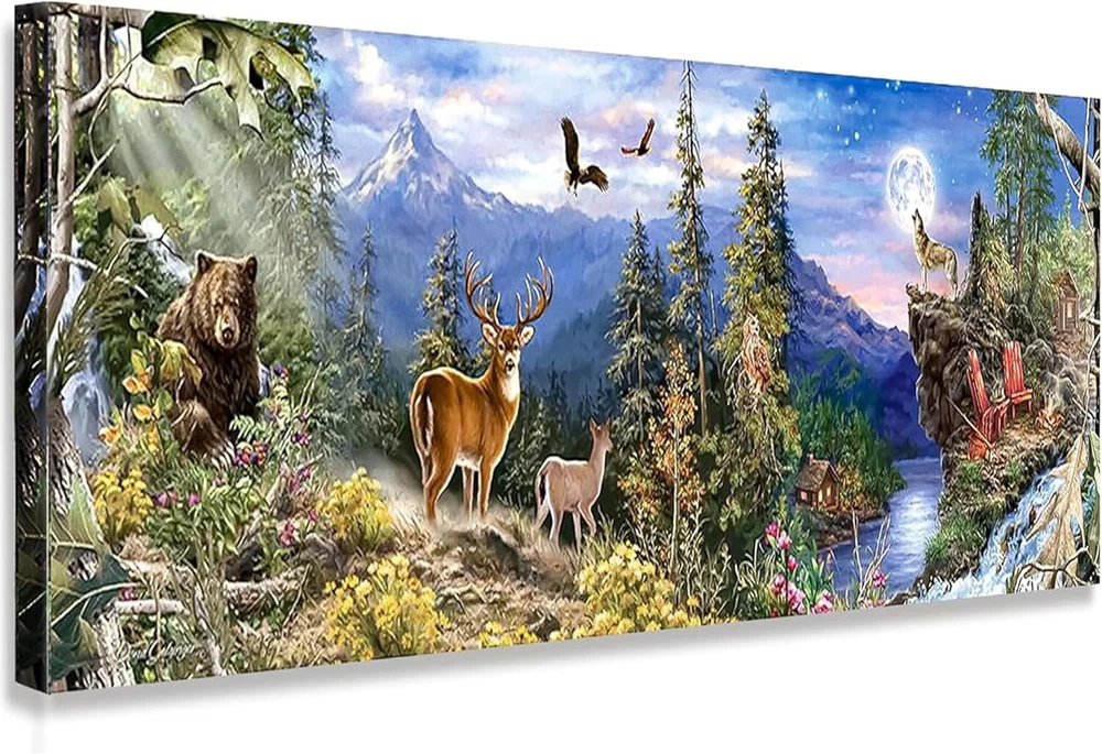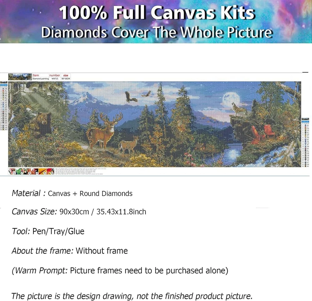 About this item 💎【Popular Diamond Art】: This is a popular Forest diamond art kits for adults and kits. Creating your own art is ecstatic and entertaining, YALKIN diamond painting kits are fun and easy to paint. 💎【Super Sparkle Diamonds & Best Size】: 35.4x11.8inch round full drill forest diamond painting kits. Finished item is colorful, three-dimensional and vivid, easier and more beautiful than cross-stitch. All sparkling diamond kit will never fade and shining, Match the most suitable diamonds according to the image, more virbrant. 💎【HD Canvas & Add More 20% Diamonds】DIY Diamond Painting Full Drill with high clear printing oil canvas is waterproof and has even texture, the pattern itself has a sticky background and plastic overtop to keep the picture sticky and then the gems will hold, so that you are easy to complete the picture. We provide additional 20% drill diamonds dots. 💎【Fun Experience & Enjoy Easy Time】DIY diamond painting with your family and friends during the holiday is very interesting. Meet your favorite hobby, let you feel the stress just melt away as you Paint With Diamonds. It can not only enhance your hands-on ability, self-confidence and perseverance cultivate patience, but also enjoy the fun of collective collaboration. The elderly and children are suitable 💎【Best Decoration of Room and Great Gifts】Cross Stitch Diamond Painting is perfect to decorate your office, living room, dining room, bedroom, bathroom, study, hallway, bar, and so on. This is the modern way to brighten the walls of your home, and relax you after work. It is sure to captivate wherever it is hanging. It will be wonderful gifts for family and friends