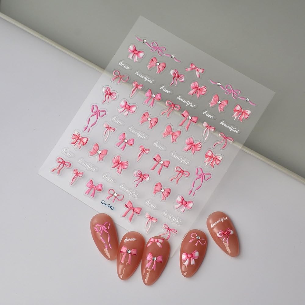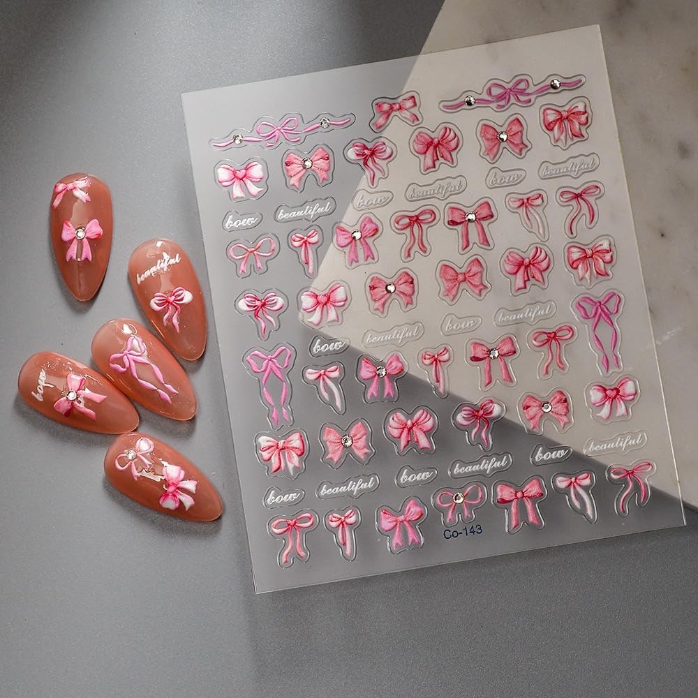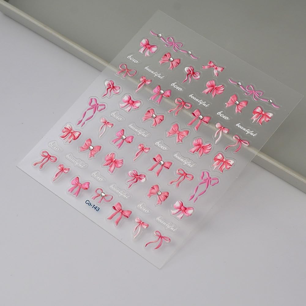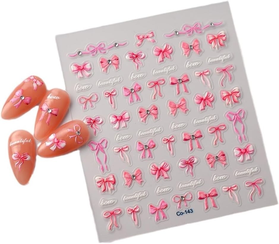 5D Embossed Bow Nail Stickers Pink Bowknot Nail Art Stickers with Rhinestone Design Bow Nail Decals for Women Girls Christmas Acrylic Nails DIY Manicure Nail Supplies Item Description Bow Nail Decals: 1 sheet of 5D embossing carving patterns litter bow nail stickers give people an intuitive and advanced exquisite feeling. Bowknot bow elements summer design nail decals are perfect for decorations for your spring summer nails 5D Embossed Nail Decals: Fine carving, perfect shape, with a unique three-dimensional bump effect. It's 10 times the thickness of an ordinary sticker that will make your spring nails more realistic and interesting Easy to Use: Bow nail art sticker is easy for you to apply; You can apply nail polish first, and then stick the nail sticker to your nails, last seal them with clean nail polish; Please note that the nail polish is not included in the package Quality Material: The bow nail art supplies are made of plastic, adhesive and quality, considerate and reliable, not easy to fall after sticking, you can use it safely Quality Material: The bow nail art supplies are made of plastic, adhesive and quality, considerate and reliable, not easy to fall after sticking, you can use it safely › See more product details Nails decals adopt high-precision printing technology, high-precision microcarving technology: pattern edge is clear and delicate, high color saturation, reject the sense of cheap halo. 0.1mm ultra-thin flexible material, perfectly fit the curvature of the nail surface, thin and light like the second skin, breathable and not boring, long-term wear without burden. From minimalist geometry and romantic flowers to festive limits, daily styles are freely defined and easily matched with makeup, clothing and occasions. Payment We accept payment only through PAYPAL Shipping We ship products worldwide through standard express courier service, it will reach within 7 to 10 days to abroad buyers, we ship the product after recieved clear payment and give full information about shipment to the buyer Return We accept product return within 7 to 21 days from delivery date but product should be in original position and not in damaged condition,the return shipping charges will be buyer responsibility