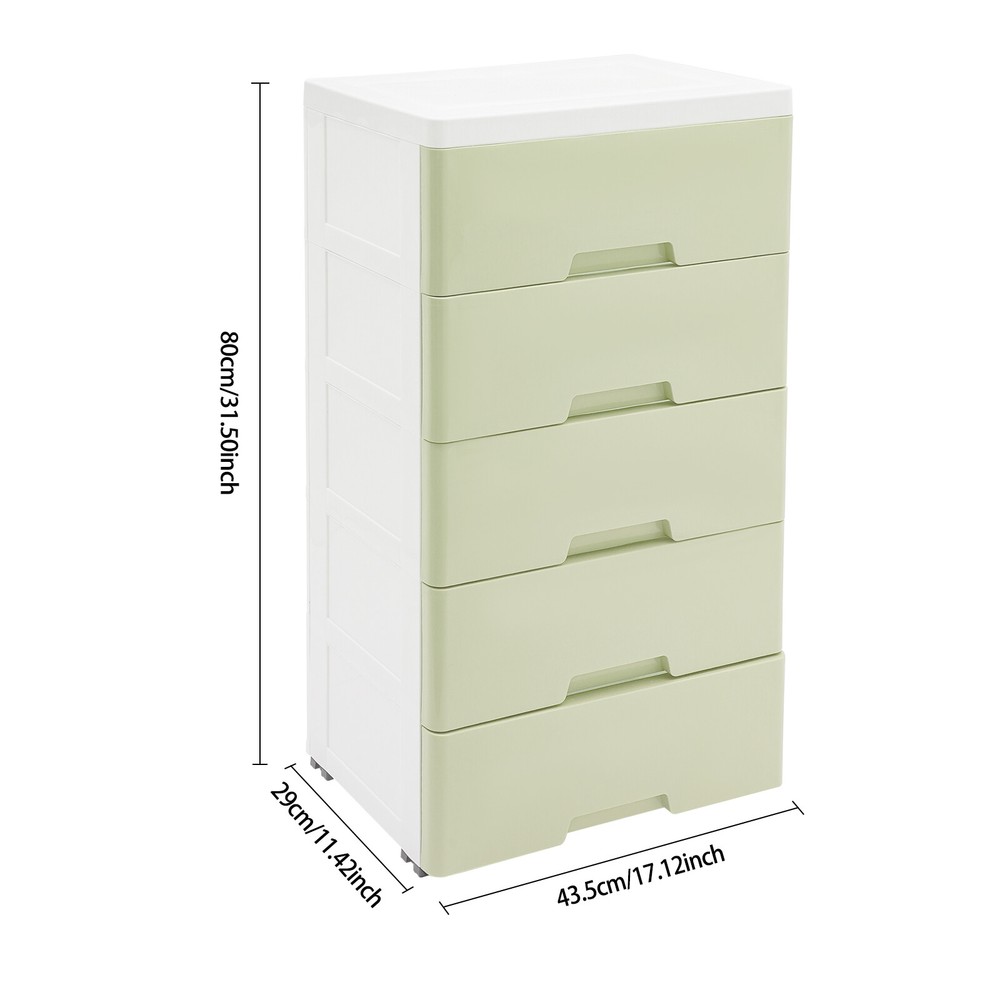Application It is ideal for bedrooms, nurseries, playrooms, entryways, living rooms, kitchens, kid's rooms, and more. It can be used to store toys, snacks, towels, tissues, socks, and other daily supplies. Specification Color: Green Material: PP Process: Injection Molding Style: Modern Pattern: Solid Shape: Rectangular Assembly Required: Yes Installation Type: Floor Standing Number of Drawers: 5 Product Size: 43.5*29*80cm/17.12*11.42*31.5 inch Package Size: 45.5*32*37cm/17.91*12.6*14.57 inch Overall Load Capacity: 20-30kg/44.09-66.13 lbs Gross Weight: 4.96kg/10.93 lbs Net Weight: 4kg/8.8 lbs Package Included 1* Storage Cabinet Other Accessories for Assembly 5 Drawers Dresser Shelf Cabinet Storage for Home Bathroom Organizers Furniture Welcome to our store^-^ Description Cleanness and tidiness are a good attitude towards life and will put you and your family in a good mood. Our storage cabinet is made of high-class PP with sufficient storage space and a beautiful and practical design, allowing you to neatly and efficiently organize your belongings and make you feel organized and relaxed. Say goodbye to a cluttered room and enjoy a neater, more efficient life! Key Features Sturdy and Durable: It is made of high-class PP with an injection molding process, which is sturdy eco-friendly, odorless, anti-corrosion, and rust-resistant , ensuring its beauty and long-term use. Life Assistant: The 5 large drawers allow you to categorize clothes and other daily necessities to create a cleaner and tidier home environment.The top platform can hold remote control boards, alarm clocks, potted plants, and other items within reach. It's also at the right height for kids to reach easily and develop their organizing habits. Excellent Load Capacity: The high-class materials and rectangular construction give it excellent stability and can hold 44.09-66.13 lbs, allowing you to place items with confidence. Minimalist Style: The green color scheme combines rectangular shapes with clean lines to create a minimalist aesthetic, highlighting a strong modern appeal and adding a touch of sophistication to your room. Simple Installation: With complete installation parts and a simple structure, you can assemble it yourself and enjoy the fun of the installation process. Easy to Clean: Thanks to its smooth surface and simple construction, you can wipe it clean with a damp rag. Ideal Gift: Thanks to its practicality, it will make a fine gift for family, friends, and loved ones on Christmas, housewarming, birthdays, anniversaries, and holidays. Customer Service : We aim to provide quality products and services. If you have any problems, please feel free to contact us. We will reply and solve the problem for you as soon as possible. Details Round Corners& Edges: They can prevent your children from being injured caused by accidental collision. Convenient Handles: Each drawer has a concave handle to help you open or close drawers more easily. Small Pulleys: They are built into the bottom feet for convenient and easy moving of this cabinet. Anti-breakaway Snap: It can prevent the drawer from falling easily after pulling open to improve the safety of use. Application It is ideal for bedrooms, nurseries, playrooms, entryways, living rooms, kitchens, kid's rooms, and more. It can be used to store toys, snacks, towels, tissues, socks, and other daily supplies. Specification Color: Green Material: PP Process: Injection Molding Style: Modern Pattern: Solid Shape: Rectangular Assembly Required: Yes Installation Type: Floor Standing Number of Drawers: 5 Product Size: 43.5*29*80cm/17.12*11.42*31.5 inch Package Size: 45.5*32*37cm/17.91*12.6*14.57 inch Overall Load Capacity: 20-30kg/44.09-66.13 lbs Gross Weight: 4.96kg/10.93 lbs Net Weight: 4kg/8.8 lbs Package Included 1* Storage Cabinet Other Accessories for Assembly Payment Delivery details Terms of sales About us Contact us Payment We accept ebay payment 。 Fees such as import duties, taxes are not included in the item price or shipping costs. These charges are the buyer's responsibility. Delivery details Shipping: 2-9 working days to: USA Terms of sales We maintain high standards of excellence and strive for hundred percent customer satisfaction. Feedback is very important to us. We hope that you contact us immediately before you give neutral or negative feedback, so that we can address your concerns. It is impossible to address issues if we do not know about them! About us Your satis faction is our ultimate goal. We work hard to earn your trust and future business. Our certified technicians have tested each item before shipping. The unit comes with 1 year limited warranty on all manufacturing defects. a) If you receive a defective item, you may return it or ask for a discount. Please contact us within 14 days after you receive the package. b) What you returned must be intact and in its original packaging as re? u. Customer is responsible for shipping costs of the returned item. c) We will cover the cost of shipping back t with the shipping rate indicated in the registration page. We will send you a new unit or refund the full payment you paid. Thank you. Contact us Business Hour Business Hour: Monday To Friday: 8:30 AM to 5:00 PM (Beijing China time) Due to time zones, our reply to your questions may not be immediately. But within above working time, we will reply your email within 24 hours. If it's non-workdays, please kindly be patient and wait till Monday. Please contact us with ebay message. Please feel free to contact us if you have any questions. Monday To Friday: 8:30 AM to 5:00 PM (Beijing China time) Due to time zones, our reply to your questions may not be immediately. But within above working time, we will reply your email within 24 hours. If it's non-workdays, please kindly be patient and wait till Monday. Please contact us with ebay message. Please feel free to contact us if you have any questions. Features 1: stable performance,Durable Fe'a'tu're's ★Stable performance