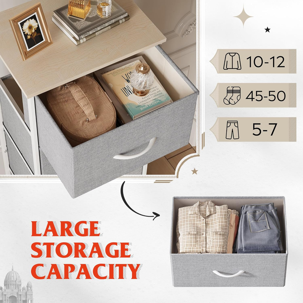 Store New Arrivals Add to Favorite View Feedback Contact Fabric Dresser, 5-Drawer Tall Dresser for Bedroom, Storage Dresser Organizer with Fabric Bins, Wood Top, Sturdy Steel Frame, Chest of Drawers for Closet, Hallway, Light Grey Description Item model number ASNG090LGR Room Type Bedroom, Living Room, Closet, Entryway, College Dorm Product Dimensions 11.8"D x 15.7"W x 47.5"H Mounting Type Freestanding Assembly Required Yes Color Light Grey Furniture Finish Off white top and light grey drawer Warranty Type Full Item Weight 17.11 pounds Material MDF board, Non-woven fabric, Steel frame Finish Type Polished Size 11.8"D x 15.7"W x 47.5"H (5 Drawers) Drawer Type Center Mounted Slide Number of Drawers 5 Style Modern Special Feature Mutipurpose, Spacious Storage, Sturdy & Durable, Easy Assembly Model Name ASNG090 Storage Cabinet / LGR Product Care Instructions Wipe with Dry Cloth Number of Pieces 1 【Excellent Storage Capacity】Bedroom dresser with 5 drawers provides plenty of storage space, which can classify your messy items as your need; The wooden table top with good load-bearing performance provides a hard surface to place lamps, books, decor, and more. 【Lightweight Design】WLIVE tall storage tower with slim and lightweight design to easily move anywhere and fit into smaller spaces, while provides additional storage space for you. 【Multifunction Dresser】This chest of drawers fits compact spaces perfectly. It can be placed in the closet, hallway, living room, bedroom, office, etc. Match perfectly with other WLIVE storage towers. 【Great Strong Construction】X-shaped frame on the back of the dresser improves stability; Water-resistant MDF wood top is sturdy and easy to clean; High quality fabric bins with easy pull handle are fade and stain-resistant,ensure a use period. 【Safe for Family】Non-woven synthetic fabric is breathable and harmless; Adjustable Feet protect floors surfaces and provide a stable platform on uneven floor surfaces; Anti-tipping accessories included can prevent incidents, create safe home environment. 【Easy Assembly】Overall dimension of fabric dresser is 11.7"D x15.7"W x 47.5"H. Come with detailed instructions, provided all numbered accessories, hardware and tools for quick setup. Product Description 1 Large Fabric Drawers 2 Ajustable Feet 3 Sturdy Steel frame 1 BEDROOM 2 LIVING ROOM 3 HALLWAY Comparison of products in the same color Add to Cart Add to Cart Add to Cart Add to Cart Add to Cart Customer Reviews 4.5 out of 5 stars 1,572 4.5 out of 5 stars 3,924 4.4 out of 5 stars 6,116 4.4 out of 5 stars 5,908 4.5 out of 5 stars 15,598 4.5 out of 5 stars 6,517 Price $55.99 $ 55 . 99 $32.99 $ 32 . 99 $42.99 $ 42 . 99 $59.84 $ 59 . 84 $69.99 $ 69 . 99 $82.99 $ 82 . 99 Size of Table 15.7" L x 11.8" W 15.7" L x 11.8" W 17.7" L x 11.8" W 39.4" L x 11.8" W 39.6" L x 11.8" W 39.6" L x 11.8" W Height 47.5" H 29.5"H 38.1" H 30.5"H 40.2"H 49"H Number of Drawers 5 3 4 7 9 11 Easy Assembly ✔ ✔ ✔ ✔ ✔ ✔ Number of colors 6 6 7 6 9 7 ABOUT US We offer the best prices around on high quality products. Our E-store includes media such as books, movies, music and games while offering electronics, toys, sporting apparel, clothing, tools, general home, garden items and more. SHIPPING We are always working hard to ensure your package arrives as soon as possible. Please understand that some factors like weather, high postal traffic, and the performance of shipping companies are outside of our control. We offer free shipping to the lower 48 states and ship within 2 business days of payment, usually sooner. We do not accept P.O. Boxes. Please provide a physical address. For shipping outside of the continental USA, we only use eBay's Global Shipping Program.The item is shipped to KY and then sent to the rest of the world. International customers are responsible for all duties and taxes. Continue to check out in order to calculate costs for shipping the item to your country. Messages regarding eBay's Global Shipping Program MUST be directed at eBay EXCLUSIVELY. RETURNS We offer a 30-Day Return Policy on items which you are not completely satisfied with. You have the option for a full-refund or an exchange of the item. No returns are available on items shipped outside of the USA. PAYMENT We accept PayPal. CONTACT US This page content is yet to come Please ad us to your favorite seller and visit again later Thank You CUSTOMER SATISFACTION We try our very best to make sure every customer is completely satisfied. If there's a problem, message us! We're happy to help. WE ACCEPT Copyright © 2021 AutoDS. | All Rights Reserved