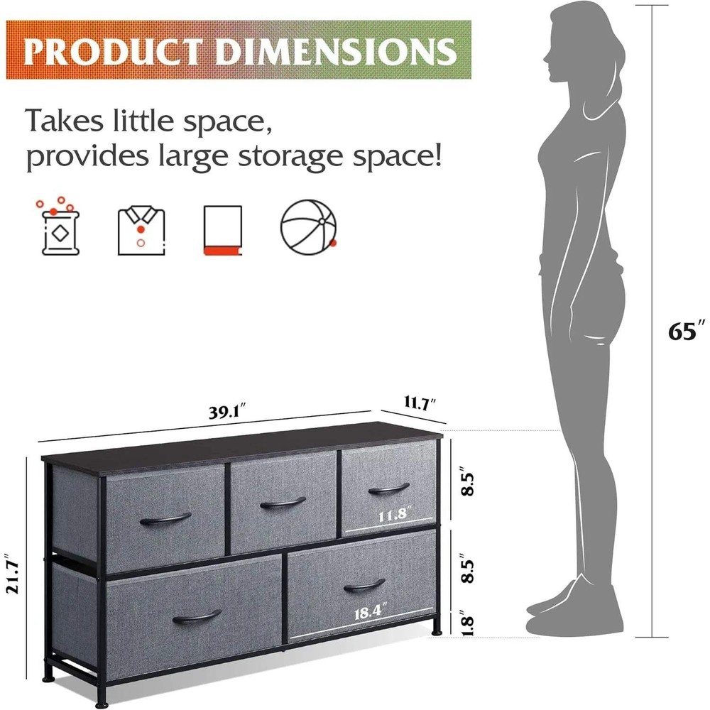 This dresser is a game-changer for small spaces! The fabric bins keep everything tidy yet easily accessible, and the sleek design fits perfectly in my bedroom. Sturdy, stylish, and surprisingly roomy—love how it maximizes storage without clutter. Perfect for organizing clothes, accessories, or even office supplies. Highly recommend for anyone needing extra storage with a modern touch!