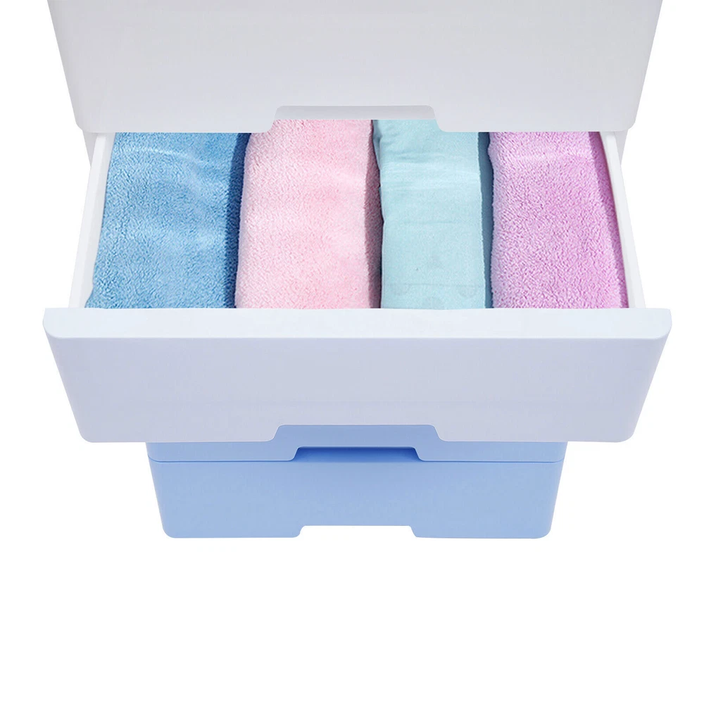Application This item can be used in bedrooms, living rooms, studies, powder rooms, beauty stores, etc. for neatly storing books, office supplies, snacks, household items, etc. Specification Material: PP Color: Gradient Blue Layers: 5 Style: Modern Gross Weight: 4.9kg/10.8lbs Net Weight: 4.1kg/9.04lbs Load Capacity: 25kg/55.12lbs Package Size: 45.5*37*32cm/17.91*14.57*12.6inch Product Size: 43.5*29*80cm/17.1*11.4*31.5in Drawer Internal Size: 36*23*14cm/14.17*9.06*5.51inch Package Included 10* Side Plates 5* Backplates 1* Top Plate 5* Drawers 5* Wheels 4* Wheel Covers 1* English Manual All Accessories for Assembly Notes Please allow the slight color difference caused by the shooting light and 1-3cm error due to manual measurement, and make sure you do not mind before you order. 5 Drawers Storage Closet Drawers Cabinet Drawers Dresser Bedroom Cabinet Plastic Description Are you still struggling with where to put the miscellaneous items in your room? Or bothered by the cluttered arrangement? If you answered yes to these questions, you shouldn't miss this 5-drawer storage cabinet. It uses healthy and environment-friendly PP material that you can use with confidence and it allows you to store many different types of items. Let you say goodbye to your messy home. Key Features Healthy and Durable Material: The storage cabinet is made of healthy and environment-friendly PP material, which is non-toxic and tasteless. It is not only harmless to human health but also very strong and durable. Large Capacity: This storage cabinet has 5 drawers and a flat top. You can sort and place many things inside to make your room tidier. The storage space is large enough to meet your needs. Highly Sealed: The storage cabinet is seamlessly integrated, which can effectively prevent mold and insects and provide protection for clothes and items all the time. Safety Protection : Each layer of drawers has a snap design so that the drawer will not completely slide down to hit you. And the rounded corners without burrs will not scratch your hands. Space-saving: It saves space by making full use of vertical space. It only needs to be placed in small corners of living rooms, bedrooms and bathrooms without taking up too much space. Strong Load-bearing Capacity: This storage cabinet made of PP is strong and stable with a load-bearing capacity of 25kg/55.12lbs , so you can place many items with confidence. Easy to Access: Each drawer of this storage cabinet has a full pull-out design and a handle, which can display all items and make it more convenient to pull the drawer to easily access items inside. Easy to Move: The bottom of the storage cabinet has 4 wheels, so you can easily move the cabinet, which saves time and effort. Versatile Decorative Item: This storage cabinet is in white, which is a versatile color. Coupled with its simple and generous design, it can fit greatly into various decoration styles and scenes. Ideal Gift: This storage cabinet has a unique design with a beautiful appearance and a large capacity with practical features. It is an ideal gift for Valentine's Day, Mother's Day, Thanksgiving, Christmas, and weddings. Details Reinforced Flat Top: The reinforced flat top is finely made and has a strong load-bearing capacity that allows it to hold many items. And it is not only easy to access but also very space-saving. Curved Handle: The handle of these drawers is a built-in curved handle that fits the shape of your hand. You can easily pull it out and do not worry about the handle loosing. This is both beautiful and practical. Removable Pulley: The pulley at the bottom of the storage cabinet makes it easy to move. If you don't need the pulley, you can also remove it, which is very flexible. Spare Wheel: We provide an extra spare wheel. If the wheel is accidentally damaged, you don't have to buy a new wheel. You just need to put the spare wheel on, which is very convenient and saves money. Application This item can be used in bedrooms, living rooms, studies, powder rooms, beauty stores, etc. for neatly storing books, office supplies, snacks, household items, etc. Specification Material: PP Color: Gradient Blue Layers: 5 Style: Modern Gross Weight: 4.9kg/10.8lbs Net Weight: 4.1kg/9.04lbs Load Capacity: 25kg/55.12lbs Package Size: 45.5*37*32cm/17.91*14.57*12.6inch Product Size: 43.5*29*80cm/17.1*11.4*31.5in Drawer Internal Size: 36*23*14cm/14.17*9.06*5.51inch Package Included 10* Side Plates 5* Backplates 1* Top Plate 5* Drawers 5* Wheels 4* Wheel Covers 1* English Manual All Accessories for Assembly Notes Please allow the slight color difference caused by the shooting light and 1-3cm error due to manual measurement, and make sure you do not mind before you order. Payment Delivery details Terms of sales About us Contact us Payment We accept ebay payment 。 Fees such as import duties, taxes are not included in the item price or shipping costs. These charges are the buyer's responsibility. Delivery details Shipping: 2-9 working days to: USA Terms of sales We maintain high standards of excellence and strive for hundred percent customer satisfaction. Feedback is very important to us. We hope that you contact us immediately before you give neutral or negative feedback, so that we can address your concerns. It is impossible to address issues if we do not know about them! About us Your satis faction is our ultimate goal. We work hard to earn your trust and future business. Our certified technicians have tested each item before shipping. The unit comes with 1 year limited warranty on all manufacturing defects. a) If you receive a defective item, you may return it or ask for a discount. Please contact us within 14 days after you receive the package. b) What you returned must be intact and in its original packaging as re? u. Customer is responsible for shipping costs of the returned item. c) We will cover the cost of shipping back t with the shipping rate indicated in the registration page. We will send you a new unit o
