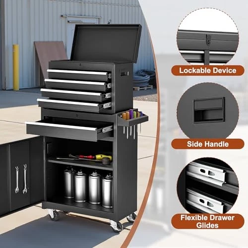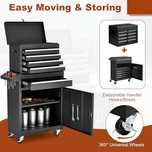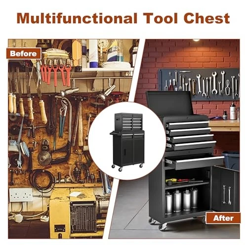 Menu 1. We require immediate payment. 2. We currently accept payment via eBay managed payments only. 3. Once payment is cleared, we will dispatch your shipment within 1-3 business days. Please refer to the "Shipping" tab for more information regarding shipping speed to your destination. Rolling Tool Chest 5 Drawers Tool Box Garage Storage Cabinet Steel Frame 2 in 1 Tool Cart with Universal Lockable Wheels, Detachable Top and Adjustable Shelf for Garage, Black Product description Steel Durable Construction: Crafted from cold-rolled steel, this toolbox is designed for long-lasting use. Its robust material is coated with an anti-rust finish, ensuring that it withstands daily use, making it ideal for both professional and home environments. Versatile Storage Options: The tool box features a top box with two handles and a bottom cabinet equipped with hand bars. The top box can be conveniently stored inside the bottom cabinet, offering flexible storage solutions for various tools and equipment. Mobility and Accessibility: Equipped with four universal wheels, including two with brakes, this tool box is easy to maneuver. The detachable handle and four hooks on the side enhance accessibility, making it simple to transport and organize tools on the go. Organized and Secure Storage: The upper box includes locks to protect your tools. The entire storage cabinet can be detached into two boxes, with the upper box featuring four drawers and the bottom cabinet having one drawer for organized storage. Enhanced Drawer Protection: Each drawer is lined with EVA padding, providing excellent cushioning and heat insulation. This thoughtful design protects your tools from damage while keeping them organized and easily accessible. PLEASE MESSAGE US IF YOU HAVE ANY OTHER QUESTIONS, AND MANY THANKS FOR READING ALL OF THIS. Copyright ©#. All Rights Reserved.