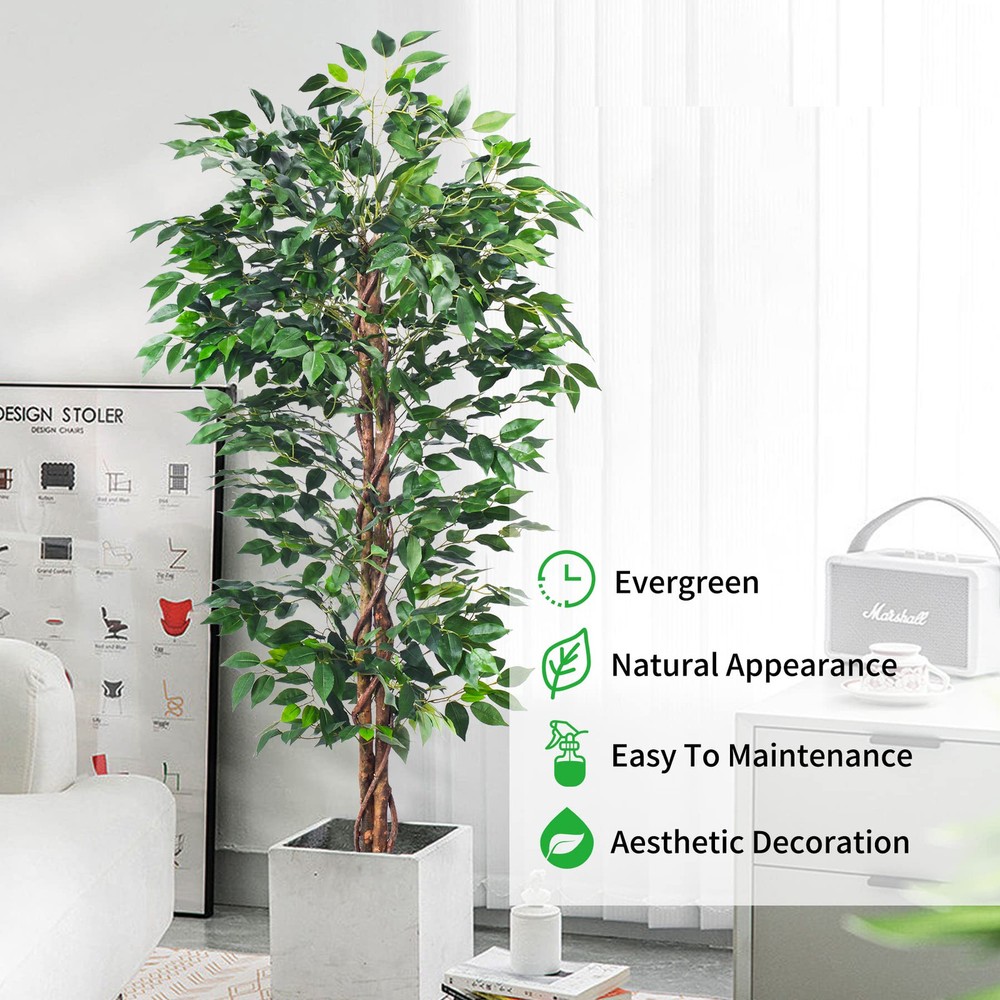 【Lifelike Artificial Ficus Tree】Our artificial tree are carefully crafted with reference to real trees in nature. During production, we will see butterflies resting on them, and birds will build nests on ficus trees. the clever little animals can hardly tell the difference between real and fake tree. 【Delightful Artificial Plants Indoor&Outdoor】Our fake plant is made of high-quality PE and silk, with realistic texture printed on the leaves, lifelike appearance and color, restore the real beauty, make you feel the cozy beauty of nature without leaving home , enjoy the relaxed and leisurely home life. 【Perfect Decoration】Faux silk plants can be widely used in indoor& outdoor decoration. perfect decor for home, office,shopping mall, hall, living room, balcony, entrance, clothing stores, restaurants, coffee shops, amusement park indoor & outdoor. no matter where these ficus tree placed, it is a touch of beautiful color. 【Easy for Maintenance】The benefit of ficus tree artificial is easy for maintenance. you only need to wipe off the dust with a rag occasionally. you can change the position and decorative pots at will. artificial plant not like a real plant. It will save a lot of time and energy. 【Warm Reminder】Due to the transportation package, ficus tree leaves may be squeezed. the leaves of these potted faux tree can be adjusted, when you receive them, please comb the leaves to make the ficus tree artificial look plump and lush, and then put them where you need.