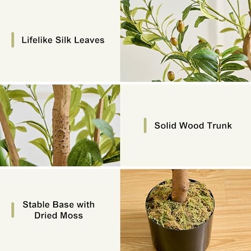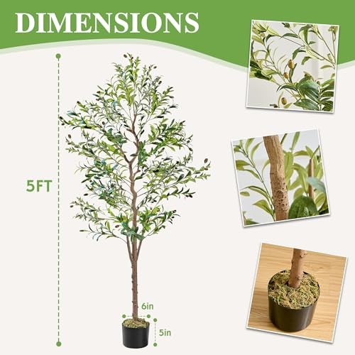 5FT Tall Artificial Olive Tree in Black Planter for Indoor Decor