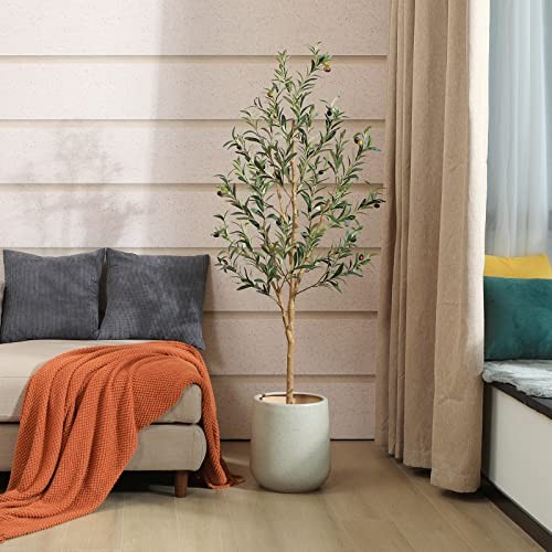 Artificial Olive Tree, 5FT Tall Faux Olive Tree with White Tall Olive - 5FT