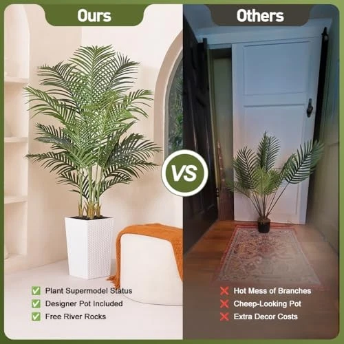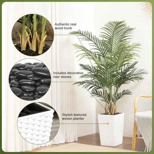 Return Policy Fast Delivery Trusted seller 5FT Artificial Palm Tree - Tall Fake Tree with White Taper Planter & Pebbles, UV Resistant for Indoor & Outdoor Decor - Large Potted Faux Plant for Living Room, Office, Home Decor,VN130 Product Description Lifelike Palm Tree:Bring the beauty of nature into your home with this 5FT tall artificial palm tree. Featuring realistic PE leaves,this tall fake plant adds a lush,tropical feel to your living room,office,or porch.The faux plants'design makes it ideal for decorating your patio,balcony,or entryway with long-lasting greenery UV Resistant for Outdoor:Designed with UV-resistant materials,this artificial palm tree for outdoors stands strong against the sun.Unlike real indoor plants,it never fades or wilts,maintaining its vibrant green leaves all year round.Whether placed in your home or garden,this fake palm tree stays lush and beautiful in any season Modern White Planter:This artificial tree comes with a white taper planter with imitation woven-texture, blending seamlessly with any home decor indoor style. Unlike other artificial plants, it includes 4lbs of decorative pebbles, providing extra stability and elegance. The pot design makes it a statement piece for your room, office, or porch decor Adjustable Branches:Create your perfect palm tree decor with flexible,adjustable branches that can be bent and shaped to fit your space.Whether you prefer a fuller faux plants indoor look or a sleek artificial plant for a modern touch,this 6ft tall artificial plants indoor lets you personalize your room decor,patio,or office space effortlessly Low Maintenance,No Watering Required:Enjoy the beauty of faux plants outdoor without the hassle of watering,pruning,or sunlight.This fake tree is the perfect solution for busy individuals or those without a green thumb.Ideal for indoor plants lovers,it offers year-round freshness for your home,porch,patio,office,or commercial space with zero upkeep Shipping Returns Payment Shipping Shipping is FREE to all addresses other than APO/PO boxes in the lower 48 states. All our stock ships from US-based warehouses. Shipped via USPS or UPS (depending on location and package weight) Unless stated otherwise, all orders will ship within 24-72 hours of your payment being processed. Check our feedback to see the great reviews of FAST shipping we offer. Returns Seller does not accept returns Payment We currently accept payment via eBay managed payments only. Once payment is cleared, we will dispatch your shipment within 1-3 business days. Please refer to the "Shipping" tab for more information regarding shipping speed to your destination.