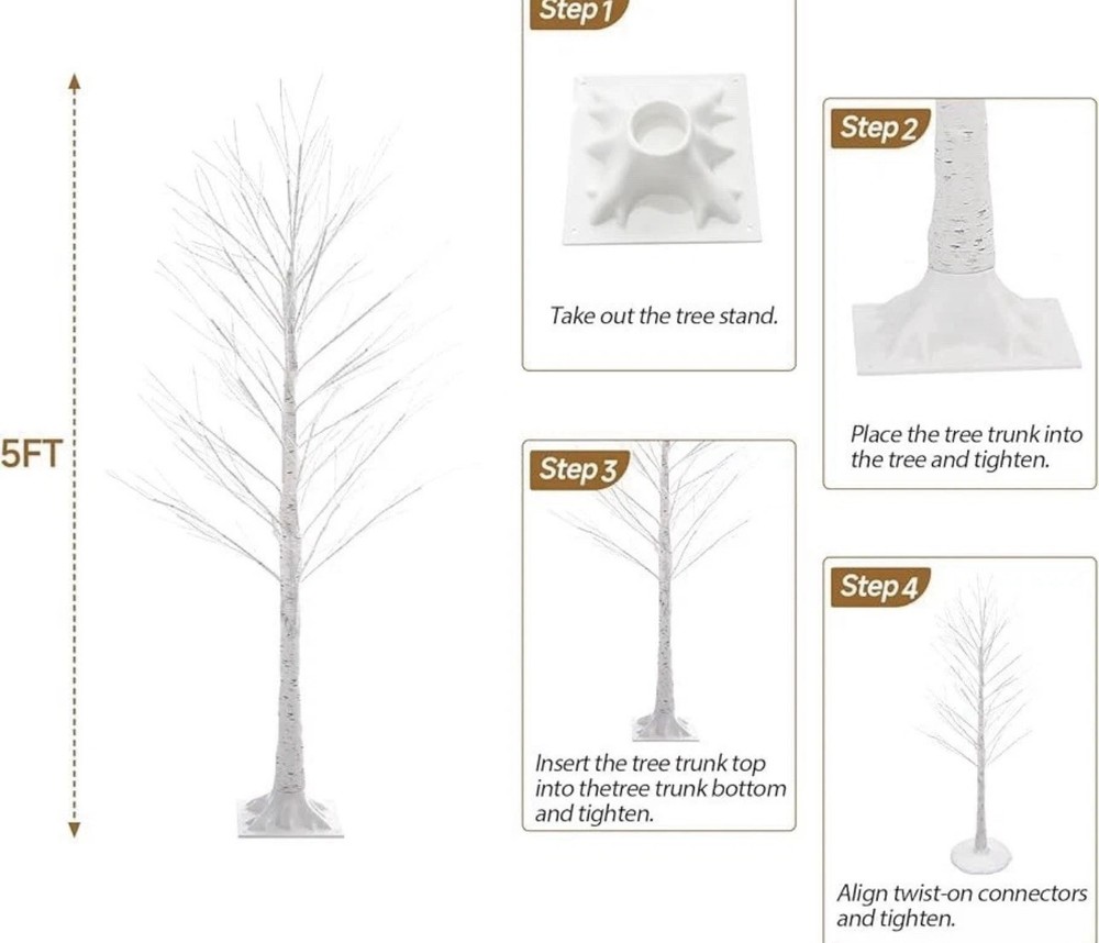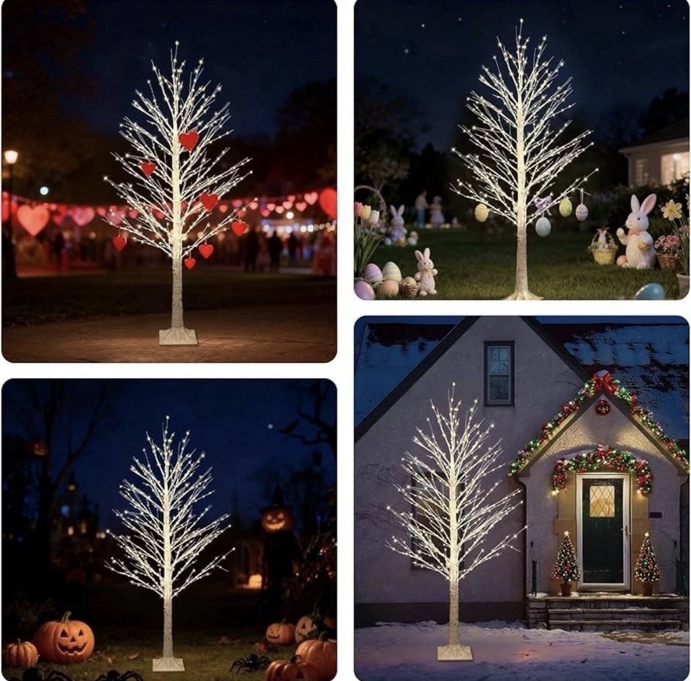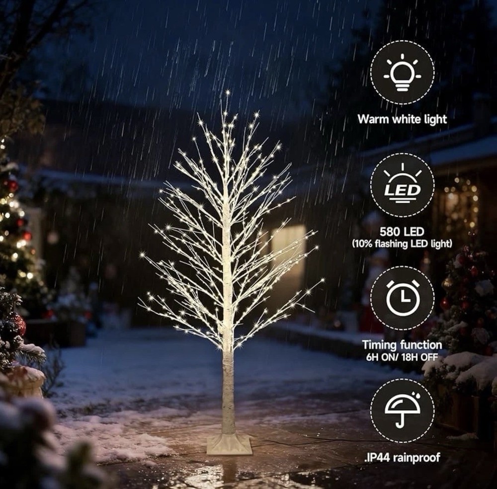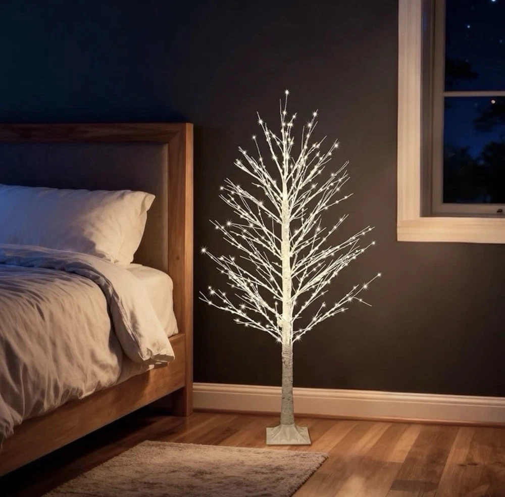 5FT Lighted Birch Tree with Twinkle Lights, 580 LED Warm White Lights!