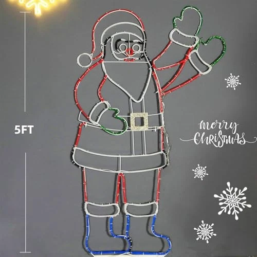 Return Policy Fast Delivery Trusted seller 5FT Lighted Waving Santa Claus Animated Christmas Decoration, 273 LEDs Neon Lighted Figure for Outdoor Yard Decor, Indoor Holiday Party Product Description FESTIVE ANIMATED DISPLAY:Bring your holiday decor to life! This Santa features a cheerful animated waving hand, creating a magical and welcoming display for guests and neighbors. SHOW-STOPPING NEON BRIGHTNESS:Standing an impressive 5FT tall and lit by 273 vibrant, multi-color neon LEDs, this Santa creates a dazzling nighttime spectacle that won’t be missed. QUICK & SECURE SETUP:Assembles in minutes on a durable metal frame. Includes ground stakes, rope, and zip ties to ensure your decoration stays securely in place all season long. INDOOR & OUTDOOR VERSATILITY:IP44 waterproof rated for your yard or porch. The extra-long 16FT power cord gives you ultimate placement flexibility, reaching outlets with ease. THE ULTIMATE HOLIDAY CENTERPIECE:Make your home the talk of the neighborhood this Christmas. This giant, waving Santa is the perfect statement piece for any festive yard or home display. Shipping Returns Payment Shipping Shipping is FREE to all addresses other than APO/PO boxes in the lower 48 states. All our stock ships from US-based warehouses. Shipped via USPS or UPS (depending on location and package weight) Unless stated otherwise, all orders will ship within 24-72 hours of your payment being processed. Check our feedback to see the great reviews of FAST shipping we offer. Returns Seller does not accept returns Payment We currently accept payment via eBay managed payments only. Once payment is cleared, we will dispatch your shipment within 1-3 business days. Please refer to the "Shipping" tab for more information regarding shipping speed to your destination.
